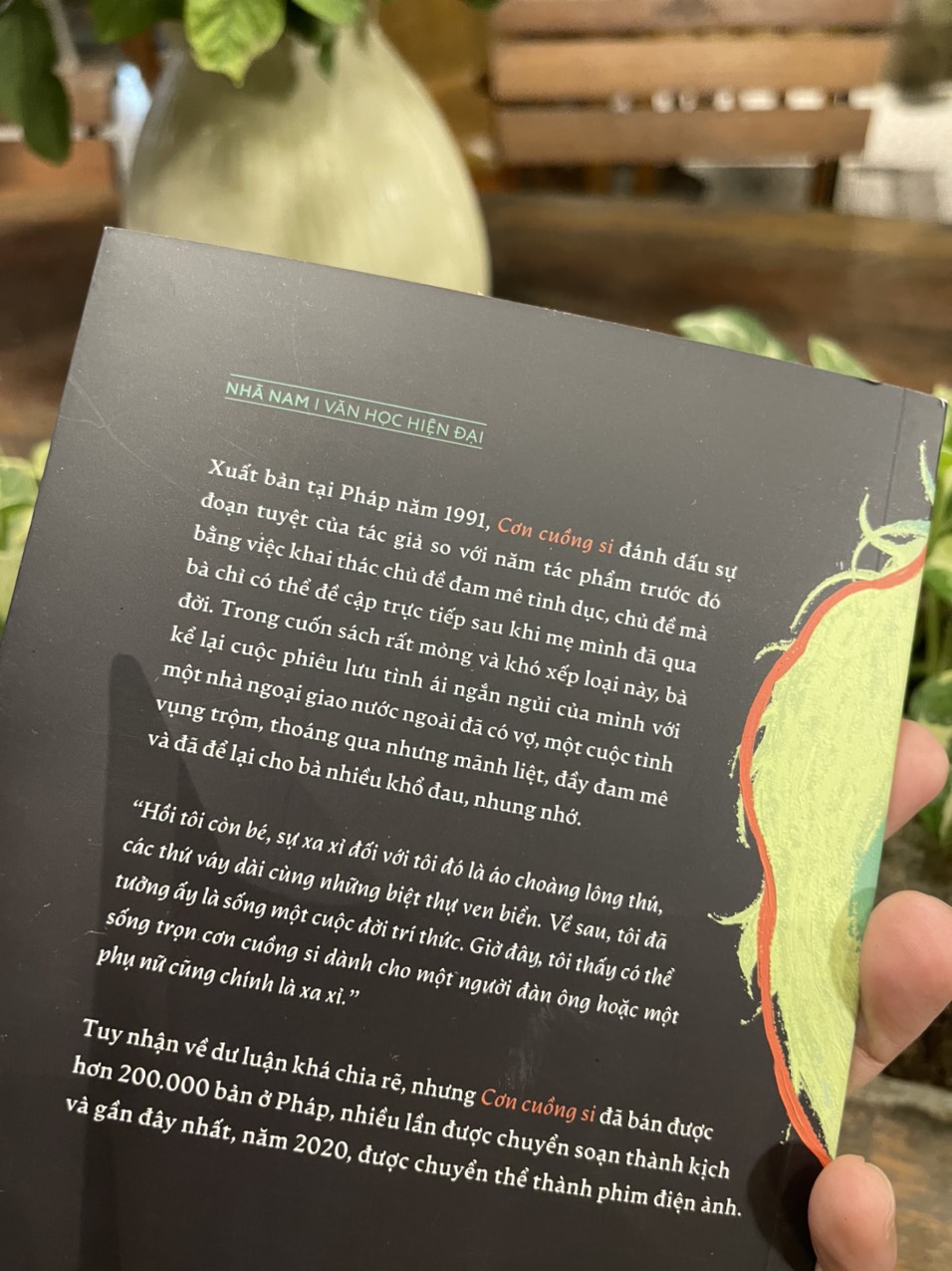 Xuất bản tại Pháp năm 1991, Cơn cuồng si đánh dấu sự đoạn tuyệt của tác giả so với năm tác phẩm trước đó bằng việc khai thác chủ đề đam mê tình dục, chủ đề mà bà chỉ có thể đề cập trực tiếp sau khi mẹ mình đã qua đời. Trong cuốn sách rất mỏng và khó xếp loại này, bà kể lại cuộc phiêu lưu tình ái ngắn ngủi của mình với một nhà ngoại giao nước ngoài đã có vợ, một cuộc tình vụng trộm, thoáng qua nhưng mãnh liệt, đầy đam mê và đã để lại cho bà nhiều khổ đau, nhung nhớ.
