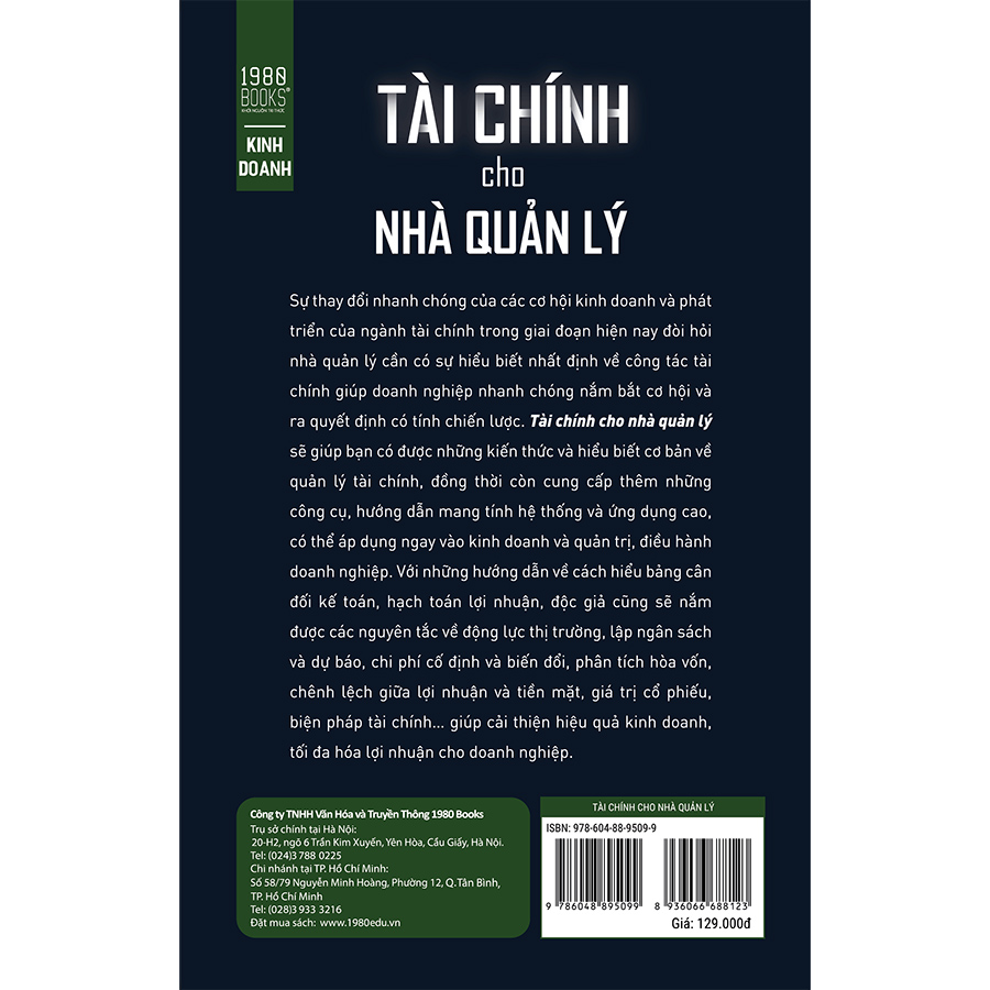 Sự thay đổi nhanh chóng của các cơ hội kinh doanh và phát triển của ngành tài chính trong giai đoạn hiện nay đòi hỏi nhà quản lý cần có sự hiểu biết nhất định về công tác tài chính giúp doanh nghiệp nhanh chóng nắm bắt cơ hội và ra quyết định có tính chiến lược. “Tài chính cho nhà quản lý” sẽ giúp bạn có được những kiến thức và hiểu biết cơ bản về quản lý tài chính, đồng thời còn cung cấp thêm những công cụ, hướng dẫn mang tính hệ thống và ứng dụng cao, có thể áp dụng ngay vào kinh doanh và quản trị, điều hành doanh nghiệp.