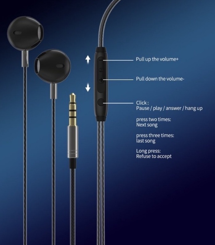 Loa: 12 mm. Chân cắm âm thanh: 3,5mm. Trọng lượng: 12g. Cáp tai nghe: Cáp đàn hồi cao TPE có dây tráng men Micrô: bộ điều khiển có micro. Điều khiển dây: được hỗ trợ