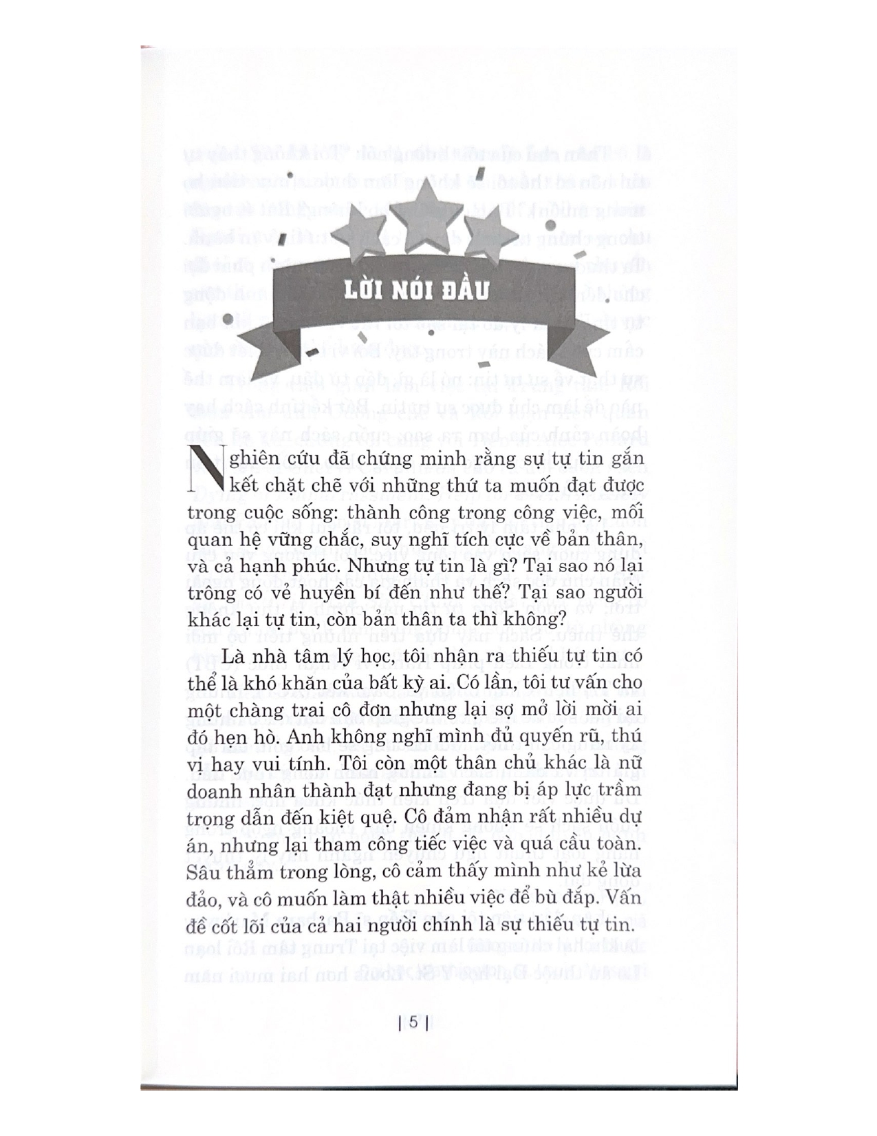 - Giới thiệu Sống Tự Tin Cuốn cẩm nang tự tin này sẽ mang đến cho bạn những phương pháp thực tế, dễ tiếp cận, giúp bạn trở thành phiên bản tốt nhất của chính mình, đồng thời xóa tan sự nghi ngờ bản thân với: Chương trình 5 bước bắt đầu với việc vạch ra mục tiêu và sử dụng các phương pháp hiệu quả để nuôi dưỡng sự chấp thuận, chánh niệm, tự trắc ẩn,… Các bài tập tương tác bao gồm suy ngẫm, danh sách cần thực hiện và câu hỏi gợi mở giúp bạn tiếp thu bài học và khái niệm. Hướng dẫn bạn hiểu rõ định nghĩa về sự tự tin và cách xác định mức độ tự tin ban đầu của bạn. Sách là lựa chọn hàng đầu cho những ai muốn cải thiện sự tự tin trong mọi khía cạnh cuộc sống. Bạn sẽ học được cách vượt qua những cạm bẫy liên quan đến sự tự tin trong các mối quan hệ, công việc và sức khỏe.