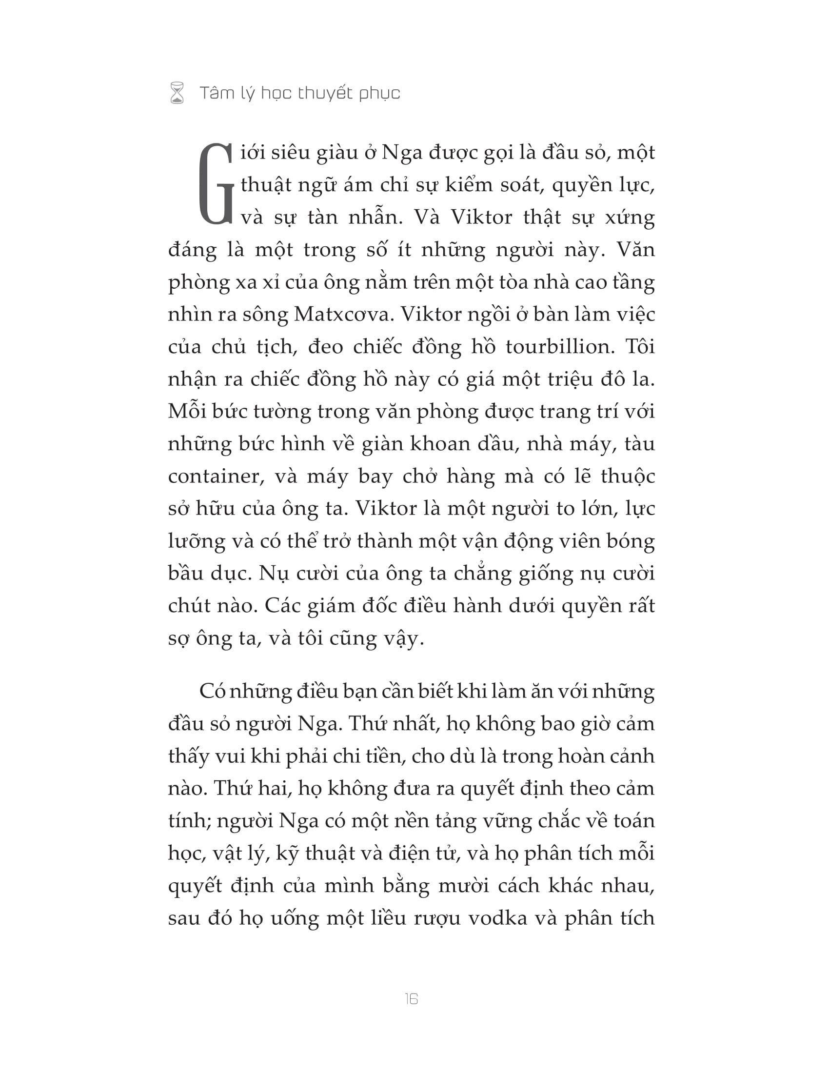 Những câu chuyện trong “Tâm lý học thuyết phục” chỉ cho bạn định nghĩa về sự ảnh hưởng và cách nó thực sự vận hành. Ở từng trang sách, Oren chia sẻ với bạn đọc “bí quyết kinh doanh” để chốt mọi đơn hàng. Cuốn sách là chìa khóa giúp bạn “lật ngược thế cờ”.