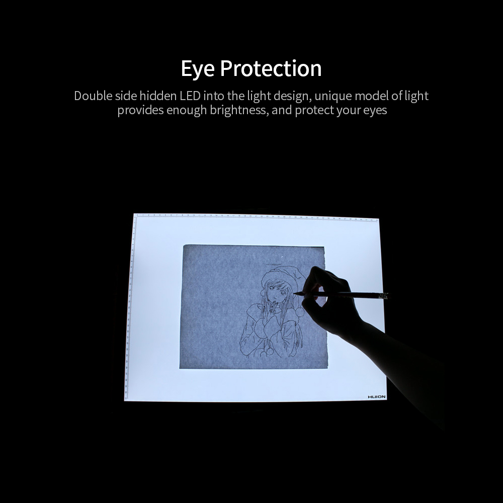Features: Ultra-thin design, 5mm thickness, easy to carry, suitable for A4 sheet. Adopt high-quality acrylic panel, high luminousness, pressure-resistant and wear-resistant. Equipped with a touch switch which maintains the adjustable brightness of the light board. You can adjust the light by simply touching the switch and its super bright LED lamps provide a perfectly illuminated surface. Adjustable brightness ensures perfect illuminated working surface for better tracing performance. Double side hidden LED into the light design, unique model of light provides enough brightness, diffuse reflection effect by joining the honeycomb cushion, makes the light more even, and protects your eyes. USB interface, the LED light pad can be powered by computer, power bank or power adapter with USB plug. Wide compatibility, suitable for sketching, drawing, animation making, calligraphy and tattoo tracing, etc. Specification: Name: LED Light Pad Brand: Huion Model: L4S Working area: 310210mm Working surface: Acrylic panels Light source: LED Working voltage: 5V Working current: 600mA Luminous flux: 110LM Color temperature: 8000-10000K Eveness: 90% Brightness: 745cd/m² Backlight Life: >50000hrs Light guide way: Light panel Item size: 36 27 0.5cm /14.17 10.63 0.2in Item weight: Approx. 610g /21.52oz Package size: 39.1 30.7 3.5cm /15.39 12.09 1.38in Package weight: 860g /30.34oz Packing list: 1 L4S LED Light Pad 1 USB Cable 1 User Manual