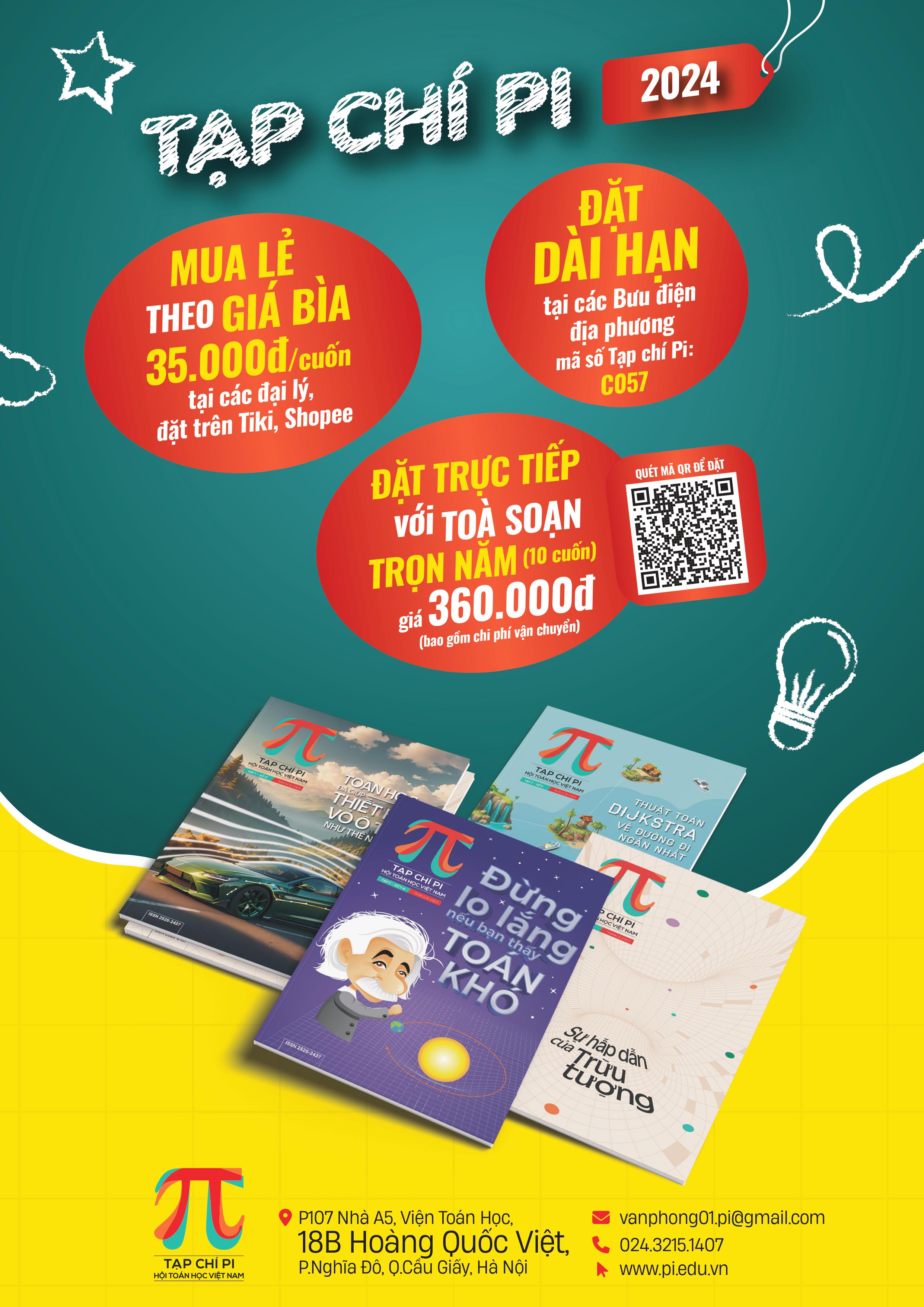 -Tác giả: Hội Toán Học Việt Nam -Nhà xuất bản: Tạp chí Pi -Nhà phát hành: Tạp chí Pi -Ngô ngữ: Tiếng Việt và Tiếng Anh -Số trang: 64 -Khổ 19 x 27cm -Hình thức bìa: Bìa mềm -Thời