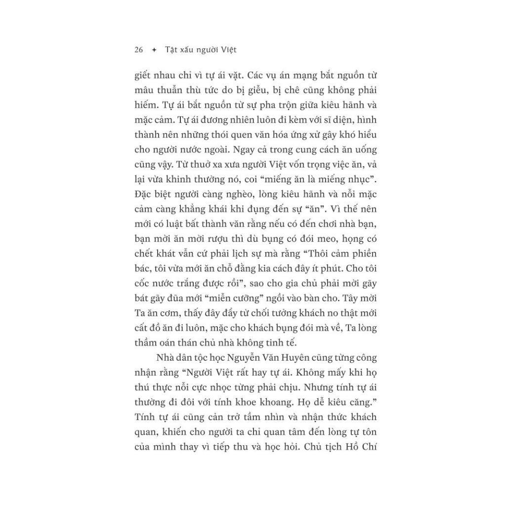 “Các cụ xưa nay vẫn cho rằng ở đời có ba việc lớn là cưới vợ, xây nhà, tậu trâu (trâu đây là sự nghiệp, vì nghiệp xưa của các cụ vốn gắn liền với trâu). Có người thì định nghĩa ‘Hạnh phúc là sáng muốn đi làm, chiều thì muốn về nhà.’ Đủ hiểu hạnh phúc hay bất hạnh ở đời cũng chỉ loanh quanh ba cái điều ấy thôi.