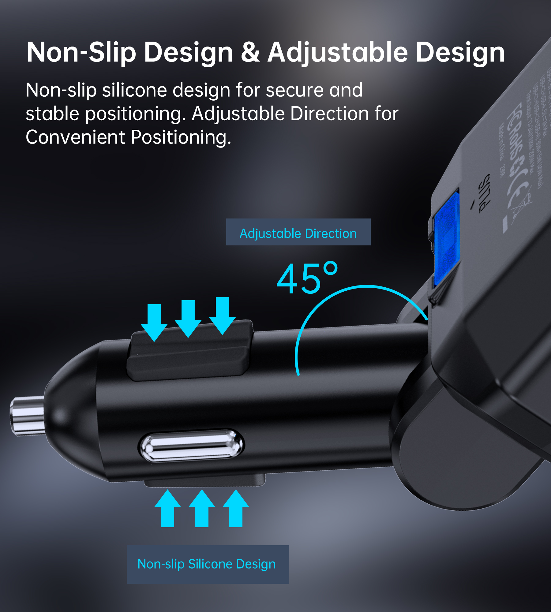 – là một tẩu sạc mở rộng được thiết kế dạng bộ chia hình chữ Y, có thể gấp xoay và có thể điều chỉnh hướng nhiều góc. Để chuyển đổi nguồn điện từ lỗ cắm tẩu điện trên ô tô thành thêm hai lỗ cắm tẩu, 2 cổng sạc Type C và 1 USB.