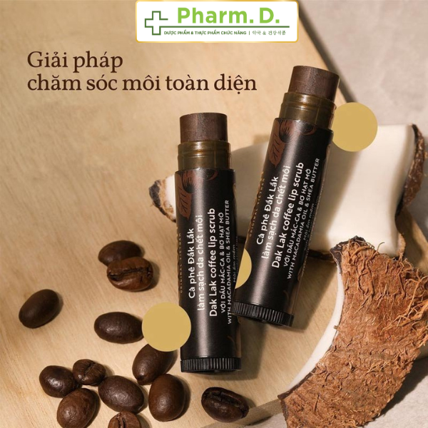 Bột cà phê Đắk Lắk (Coffee Robusta Powder): Thành phần tẩy da chết vật lý dịu nhẹ, lấy đi tế bào sừng hóa trên môi.