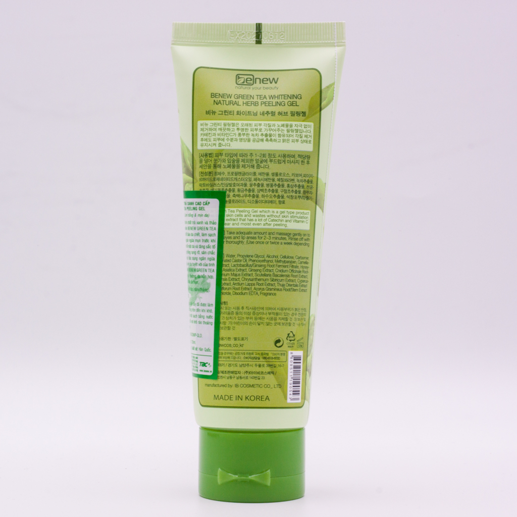 - Tẩy Tế Bào Chết Trà Xanh Hàn Quốc Benew Green Tea Peeling Gel (120ml) chứa tinh chất trà xanh thiên nhiên kết hợp với các loại thảo dược giúp giảm thiểu tế bào da