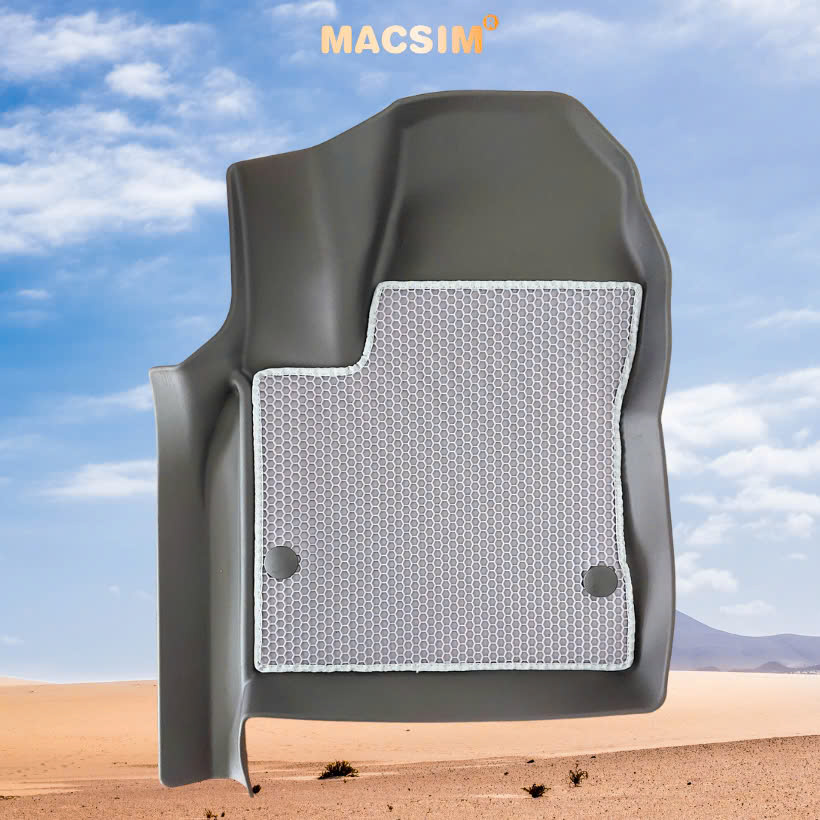 Lớp 1: Của Thảm lót sàn ô tô có hình dạng khay (được gọi là thảm nhựa đúc khuôn) được thiết kế chuẩn khít theo từng mẫu sàn xe. Thảm lớp 1 dẻo dai, dàydặn, không để lại vết hằn và vết thủng ngay cả khi quý khách sử dụng giày cao gót. Thảm thân thiện với môi trường, an toàn, hữu ích cho sức khỏe người sử dụng. Thảm lưu giữ đất, cát, nước trong khay nhựa, ngăn nước thấm xuống sàn xe gây mùi hôi và ẩm mốc, dễ dàng tháo lắp vệ sinh nhanh chóng. Lớp 2: Thảm tổ ong giấu bụi bằng cao su PBR (Polybutadiene Rubber): Chất liệu cao su PBR dẻo dai, độ đàn hồi cao, chống mài mòn cực tốt, không mùi, thân thiện với môi trường và sức khỏe. Thiết kế tổ ong 3D thông minh giúp giấu bụi, giữ lại rác và đất cát mà không bị lộ ra ngoài. Khả năng bám sàn tốt, giúp thảm không bị xô lệch khi sử dụng. Có thể tháo rời dễ dàng để vệ sinh riêng, giữ cho lớp dưới luôn sạch sẽ.