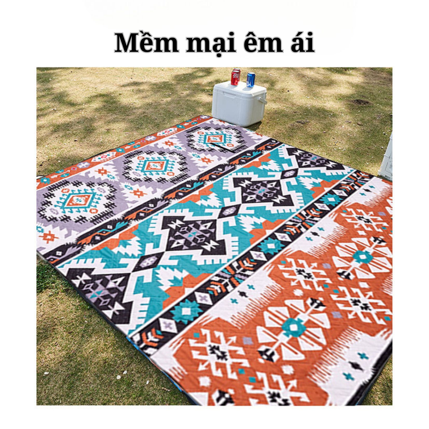 -Tấm thảm du lịch dã ngoại gấp gọn , bạt cắm trại cao cấp chống nước ,họa tiết caro màu sắc tươi mới , trang trí nhã nhặn xinh xắn có thể trải làm thảm