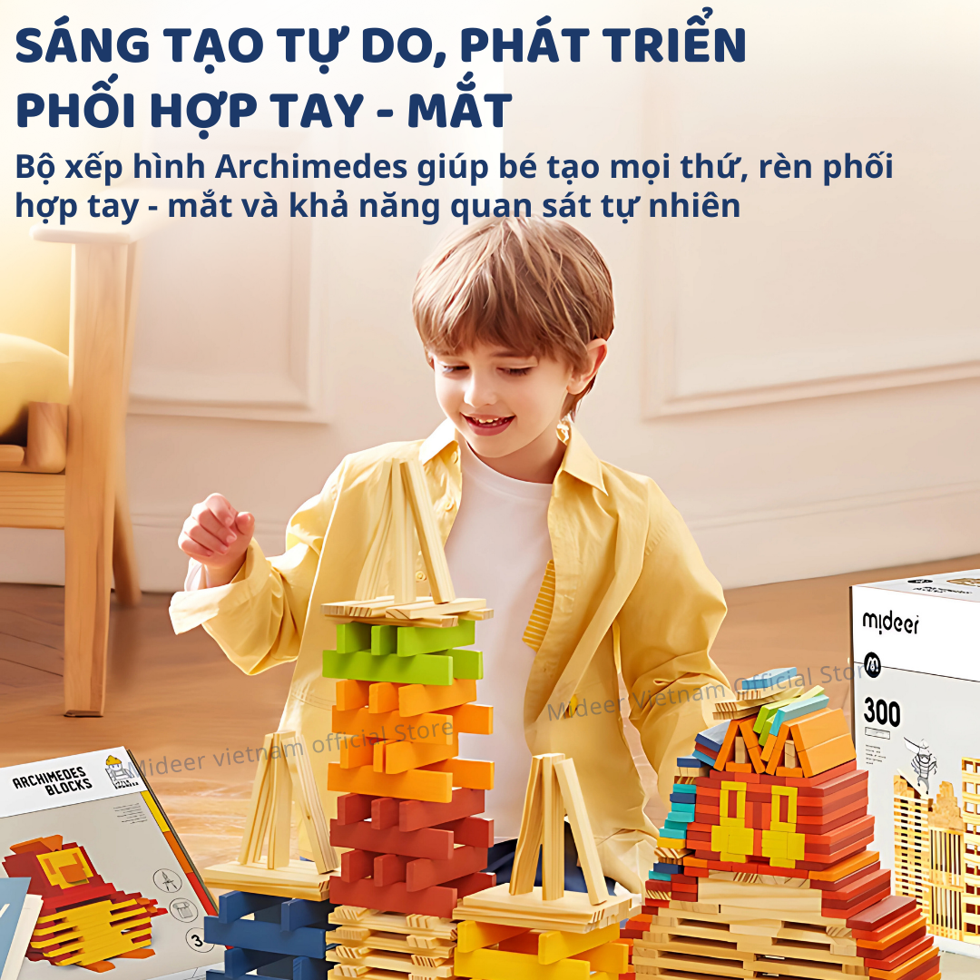 Mua tại Tiktok- CHÀO MỪNG BẠN ĐẾN VỚI MIDEER VIETNAM HÀNG SẴN SHIP HỎA TỐC, BẢO HÀNH CHÍNH HÃNG ————————————— Thanh gỗ Domino xếp hình sáng tạo Mideer Archimedes City Blocks cho bé 4 5 6 7 8 tuổi Mideer Archimedes City Blocks – bộ xếp hình thanh gỗ sáng tạo giúp trẻ phát triển khả năng tưởng tượng không gian và tư duy logic. Được vinh danh giải thưởng Rainbow 2021 và Brain Toy Award, sản phẩm mang đến vô vàn khả năng xây dựng và sáng tạo, hoàn hảo cho trẻ từ 4-8 tuổi. 14 Lý do ba mẹ nên chọn Thanh gỗ Domino xếp hình sáng tạo Mideer Archimedes City Blocks cho bé