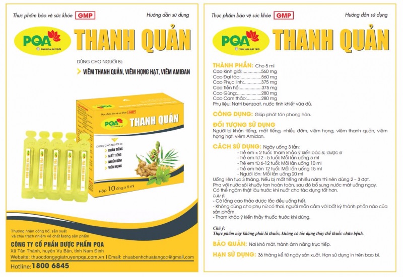 Mua tại TiktokThanh Quản PQA Dùng Cho Người Bị Khản Tiếng, Mất Tiếng, Viêm Thanh Quản, Viêm Họng Hạt Hộp 10 Ống THÔNG TIN SẢN PHẨM: