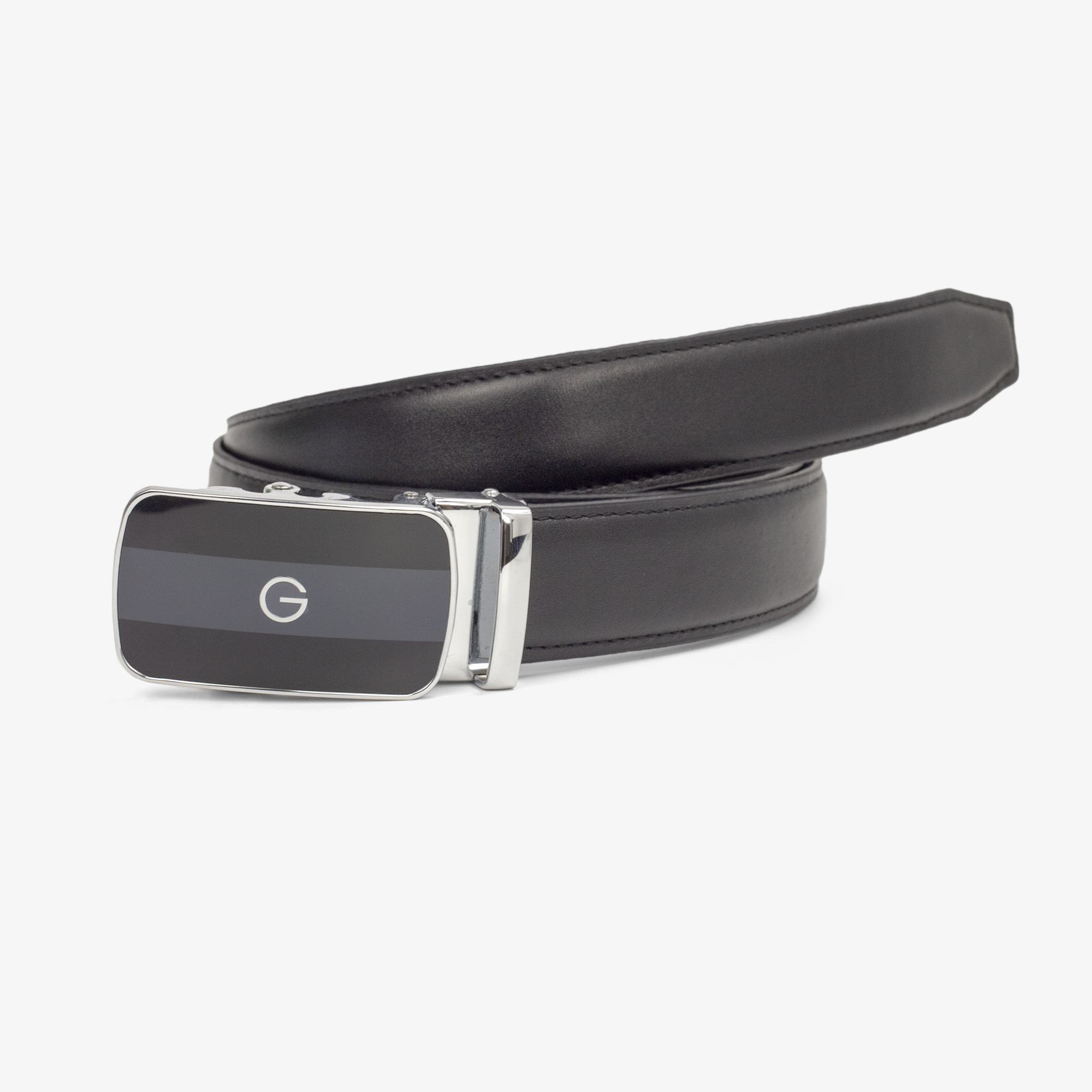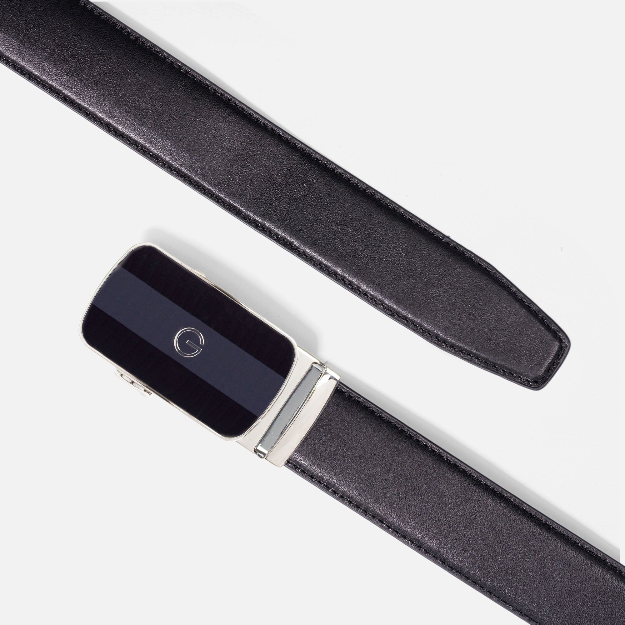 Thắt lưng nam da Saffiano 3 lớp màu đen-khóa tự động nhiều mặt lựa chọn