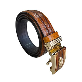 Thắt lưng nam khoá tự động INOX rất bền không sét rỉ dây da bò 100% in vân cá sấu -VIDEO 3008