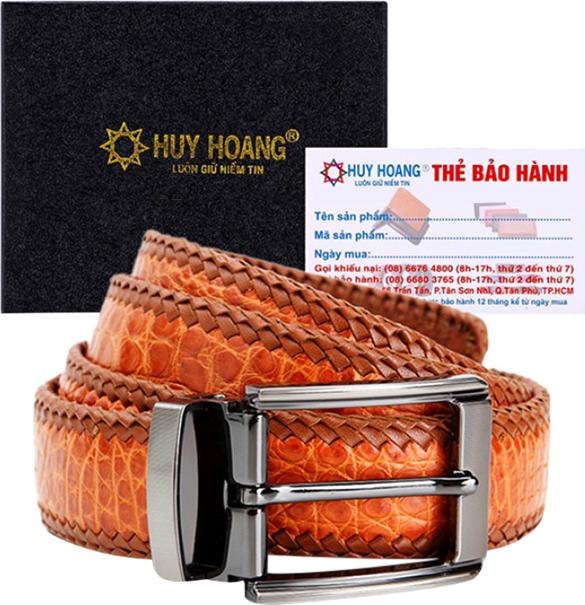 01 x Dây nịt nam Huy Hoàng 01 x Thẻ bảo hành 12 tháng (bảo hành da, bung keo, súc chỉ)