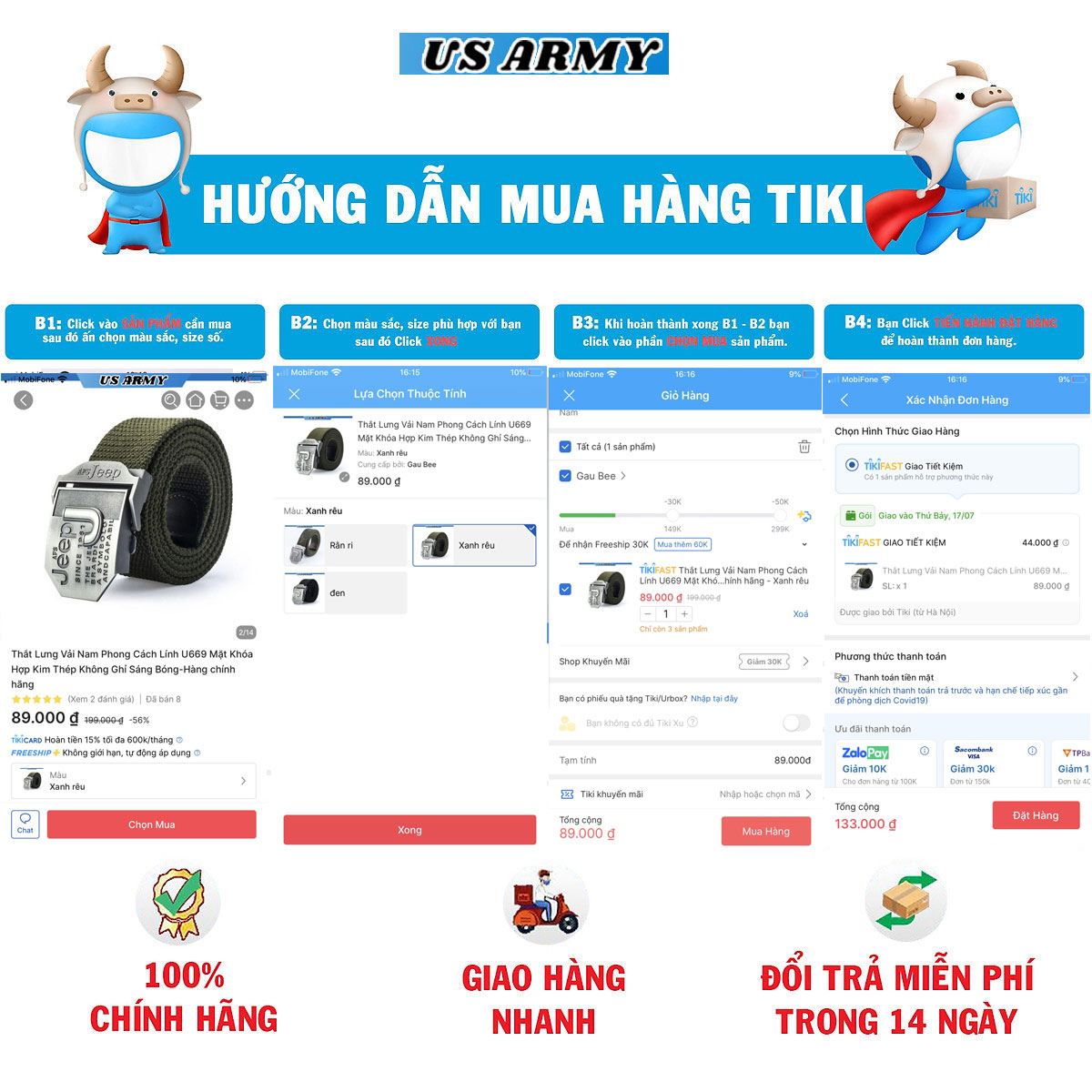 CAM KẾT CỦA USARMY:HÀNG CHUẨN NHƯ HÌNHHOÀN 100% GIÁ TRỊ ĐƠN HÀNG NẾU KHÔNG GIỐNG MÔ TẢHỖ TRỢ MIỄN PHÍ ĐỔI - TRẢ SẢN PHẨM MỌI TRƯỜNG HỢP.CHI TIẾT: -  Thắt Lưng Nam Vải Dù Mặt Khóa Hợp Kim Thép Đú...