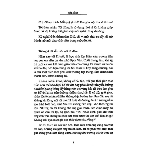 Thế giới của Dư Bảo (TB 2018) I. Giới Thiệu Sách Thế Giới Của Dư Bảo(Tái Bản 2018) Dư Bảo có giác quan thứ sáu. Cậu được mệnh danh là người có “đôi mắt quỷ” bởi linh cảm được việc xấu sắp xảy ra. Thế nhưng cậu không có khả năng thay đổi nó. Trong một chuyến hành trình trên chiếc xe tải cùng bố mình, “đôi mắt quỷ” của Dư Bảo một lần nữa lại phát huy tác dụng. Cậu thực sự không ngờ rằng cuộc đời bố cậu và gia đình lại gặp nhiều biến cố tới vậy… Dư Bảo vốn là một cậu bé 11 tuổi, bố là lái xe tải, mẹ là lao công, ngày ngày đi học qua con đường Thiên Sứ đầy cát bụi và rác rưởi. Mỗi ngày cậu được chứng kiến bao mảnh đời của những người lao động nghèo khổ bỏ quê hương lên thành phố gắng gượng bám lại kiếm sống, trải qua không ít khổ cực. Bố mẹ cậu cũng nằm trong số đó, chỉ luôn tâm nguyện cho con cái được ăn học, mong tìm ra tương lai tươi sáng hơn. “Có lẽ cả cuộc đời này tôi phải hối hận. Cái buổi đêm hôm đó trong kỳ nghỉ hè, cùng bố lái xe đường dài, tại sao tôi không khuyên bố dừng xe ở một trạm nghỉ nào đó một lúc, hút thêm một điếu thuốc gì đó. Hoặc là, lúc đi đường, tôi dứt khoát xúi giục ông ấy lái xe nhanh một đoạn, chạy nhanh như bay, cho dù bị camera giám sát chụp lại, cho dù bị cảnh sát giao thông giữ lại phạt tiền và giữ bằng lái xe tại chỗ, đều tốt hơn rất nhiều so với những chuyện đáng sợ mà chúng tôi trải qua sau đó. Bởi vì, nếu không phải không vừa khéo chạm phải sự kiện mà tôi sẽ kể sau đây, thì biến cố kinh tâm động phách tiếp theo sẽ không thể xảy ra, và bố tôi cũng không vì thế mà rơi vực thẳm.” II. Thông Tin Chi Tiết Mã Hàng: 9786046845621 Nhà Cung Cấp: Công Ty Cổ Phần Văn Hóa Văn Lang Tác Giả: Hoàng Bội Giai Người Dịch: Lục Bích Nhà Xuất Bản: NXB Văn hóa Văn nghệ TP.HCM Năm Xuất Bản: 2018 Ngôn Ngữ: Tiếng Việt Trọng Lượng: 658 gram Kích Thước: 16 x 22 Số Trang: 332 Hình Thức: Bìa Mềm