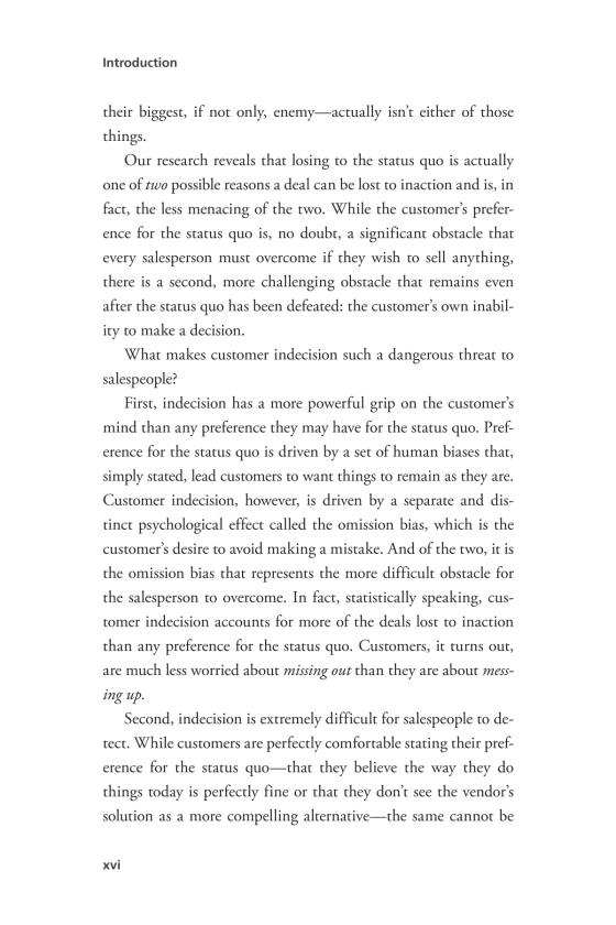 In sales, the worst thing you can hear from a customer isn't 'no.' It's 'I need to think about it.' When this happens, deeply entrenched business advice says to double down on your efforts to sell a buyer on all the ways they might win by choosing you and your business. But this approach backfires dramatically. Why? Because it completely gets wrong the primary driver behind purchasing decision-making: once purchase intent is established, customers no longer care about succeeding. What they really care about is not failing. For years, sales expert Matthew Dixon has been busting longstanding business myths. Now in The JOLT Effect, he and co-author Ted McKenna turn their trademark analysis and latest research to the vital and growing problem of customer indecision - and offer a shocking new approach that turns conventional wisdom on its head. Drawing on a brand-new, first-of-its-kind study of more than two and a half million sales conversations from across industry, they reveal the surprising truth that high-performing sales reps grasp and their average-performing peers don't: only by sing the customer s fear of failure can you get indecisive buyers to go from verbally committing to actually pulling the trigger. Packed with robust data, counterintuitive insights, and practical guidance, The JOLT Effect is the playbook for any salesperson or sales leader who wants to close the gap between customer intent and action - and close more sales.