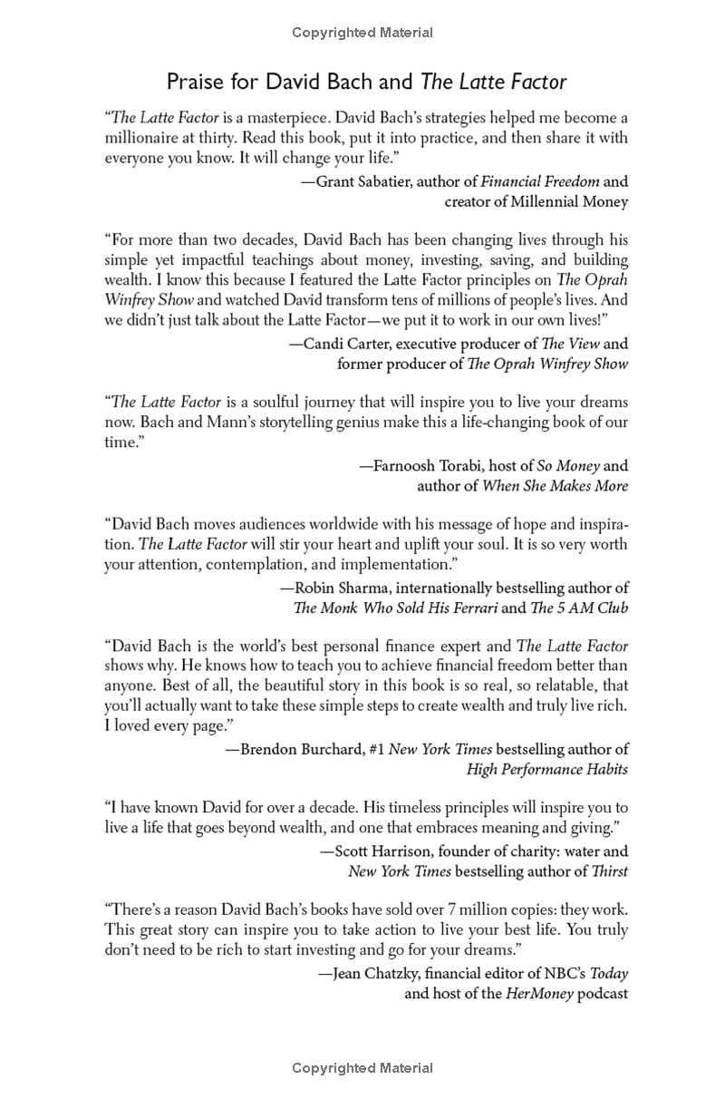 The Latte Factor: Why You Don't Have to Be Rich to Live Rich Discover #1 New York Times bestselling author David Bach’s three secrets to financial freedom in an engaging story that will show you that you are