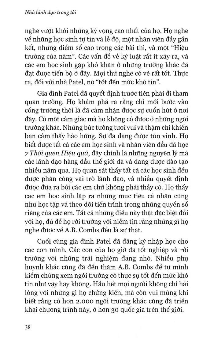 “Nhà Lãnh đạo trong Tôi là một trong những nỗ lực xuất sắc nhất đang bắt đầu có sức ảnh hưởng trong các trường học của chúng ta hiện nay. Các tác giả có lối kể chuyện đầy lôi cuốn và cách giải thích các nguyên lý cùng lời hứa của cả chương trình vô cùng khéo léo. Nếu bạn quan tâm đến giáo dục, bạn cần đọc quyển sách này.”