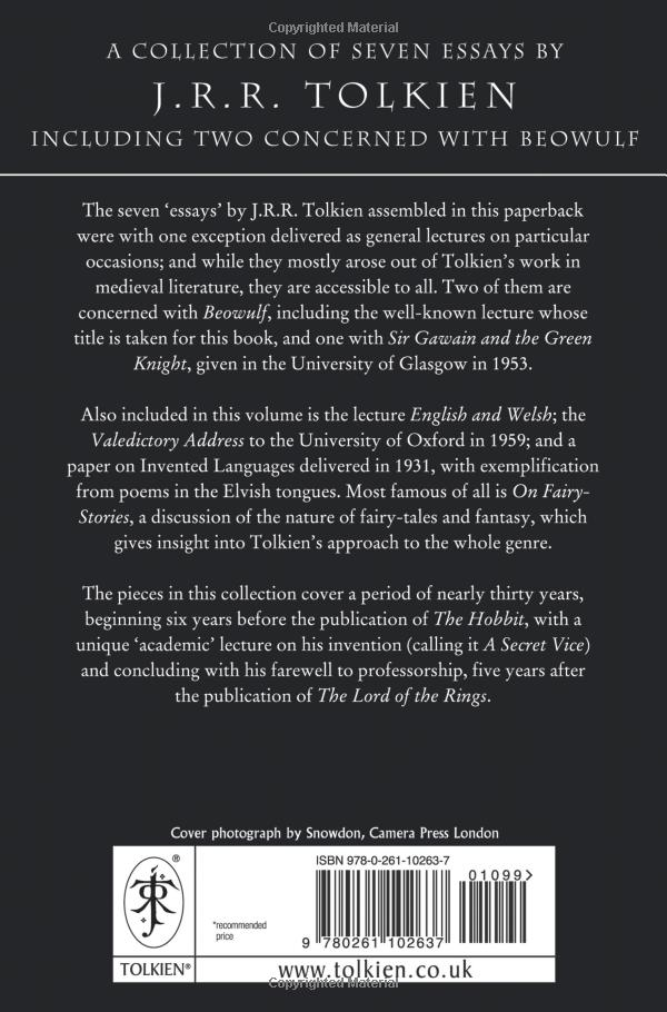 The seven 'essays' by J.R.R. Tolkien assembled in this new paperback edition were with one exception red as general lectures on particular occasions; and while they mostly arose out of Tolkien's work in medieval literature, they are accessible to all. Two of them are concerned with Beowulf, including the well-known lecture whose title is taken for this book, and one with Sir Gawain and the Green Knight, given in the University of Glasgow in 1953.