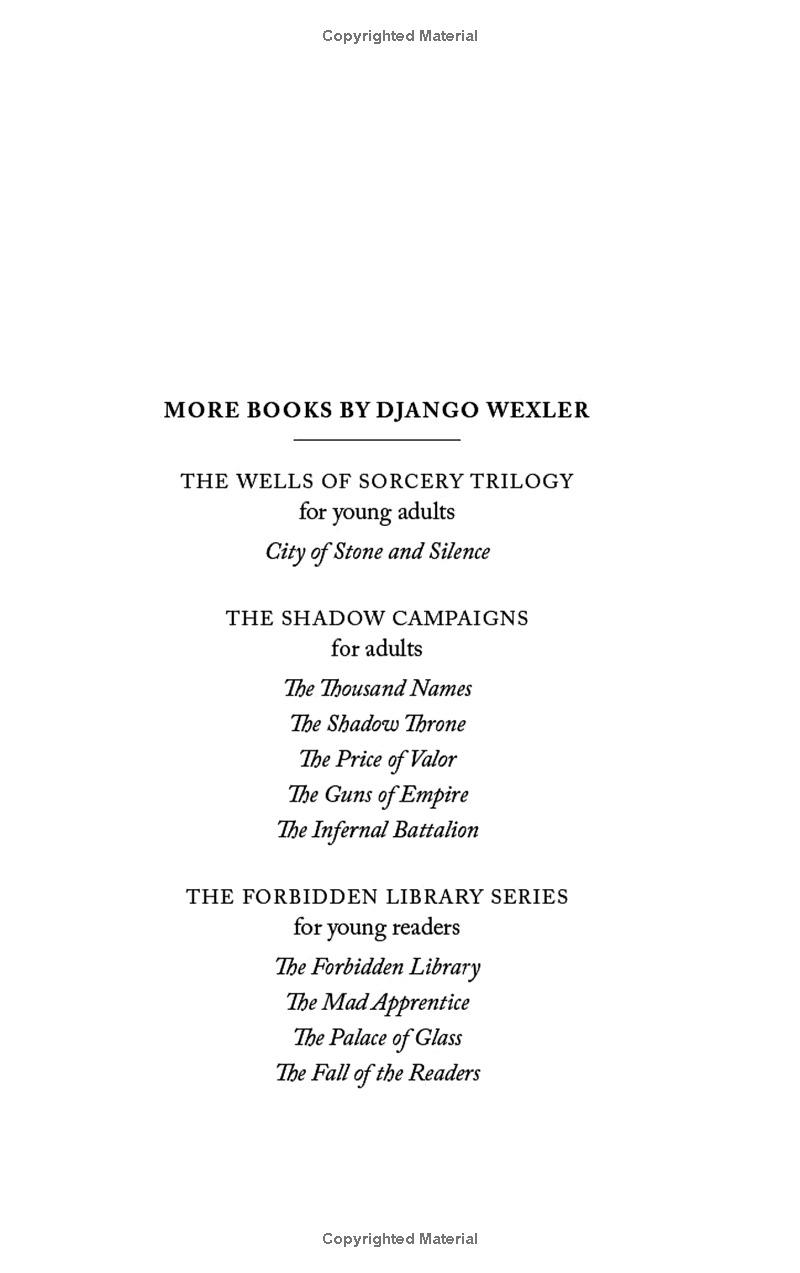 Ship of Smoke and Steel is the launch of Django Wexler's cinematic, action-packed epic fantasy Wells of Sorcery trilogy.