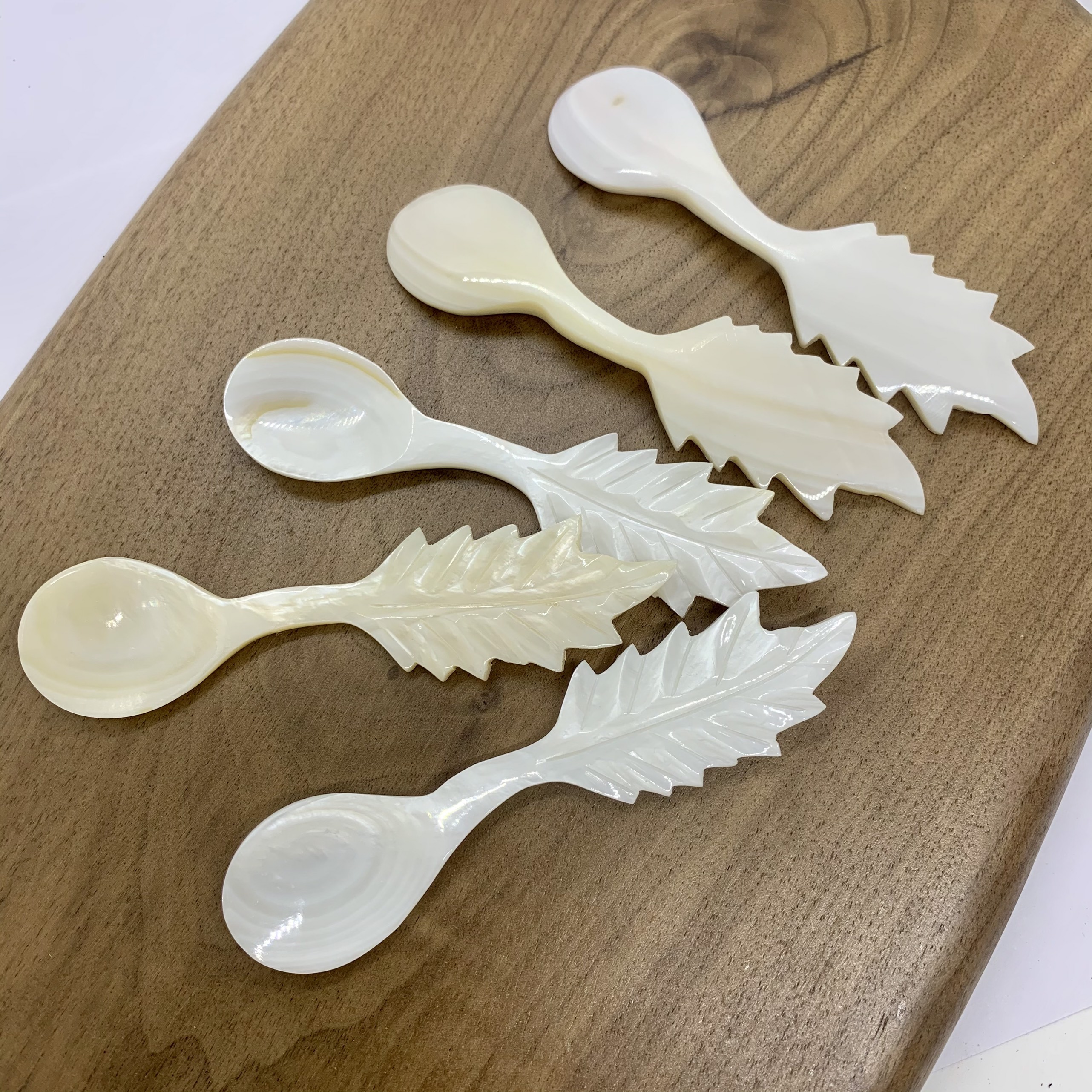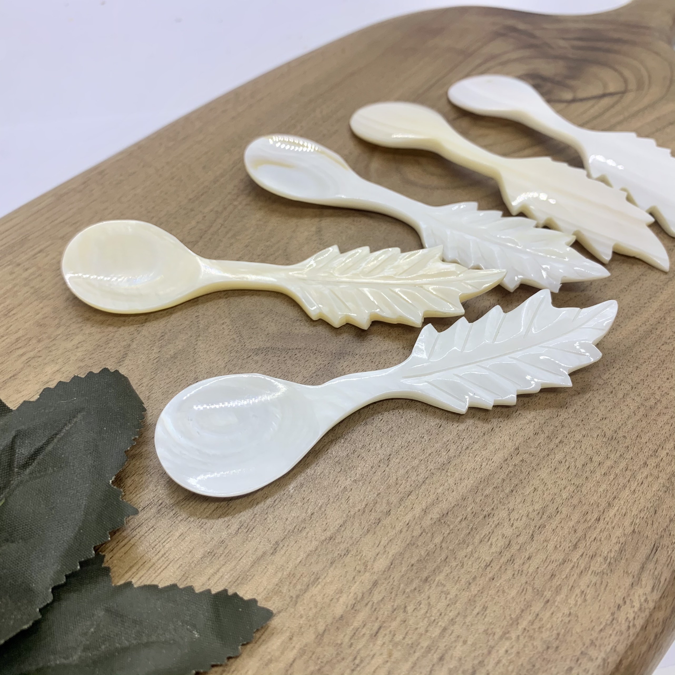 ✨Thìa/Muỗng hình chiếc lá bằng vỏ trai tự nhiên màu Trắng (CTH738T) An toàn cho sức khỏe