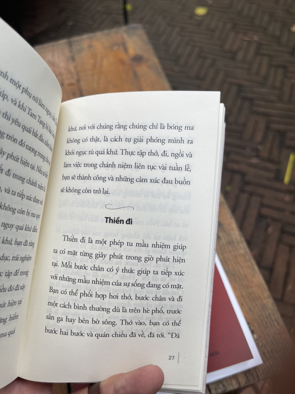 Cuộc sống quanh ta đầy màu nhiệm, chánh niệm là trái tim của thiền tập, là nguồn năng lượng xuyên suốt không thể thay đổi. Một người sống trong chánh niệm, tâm an, sẽ khiến những người xung quanh vui vẻ, an nhiên và thậm chí thay đổi cả xã hội. “Tất cả chúng ta đều có hạt giống của niệm và định” “Định làm phát sinh hỷ lạc” Định nguồn căn, có định con người sẽ cảm thấy đang thực sự sống chứ không phải chỉ tồn tại. Cảm nhận cuộc đời tươi đẹp không qua đôi mắt mà qua hơi thở và tâm hồn. Thiền sư Lâm Tế đã nói rằng: “Phép lạ là đi trên mặt đất mà không phải đi trên mặt nước hay đi trên than hồng”. Tất cả những gì ta làm đều cốt yếu là để tâm an. Mỗi ngày, ta đì tìm tự do cho hạnh phúc, hay hạnh phúc để được tự do?! Nếu cứ mải mê mắc kẹt trong quá khứ và lo buồn về tương lai, hiện tại sẽ tự nhiên ngả màu héo úa. Nghỉ ngơi là bước đầu tiên của thiền tập, và con đường ngắn nhất là thả lỏng và không gượng ép. Sống là để không uổng phí một đời, sống trọn vẹn từng giây phút, thanh thản từng hành động. Bước đi một cách thoải mái, an lạc, đi như không đi sẽ không thấy mệt mỏi. Sự cố gượng là không cần thiết nếu ta hiểu được rằng mỗi bước đi là mỗi bước được tiếp xúc với cuộc đời và sự màu nhiệm vô tận. Chạm vào đất Mẹ là nguồn căn của “Sám Pháp địa xúc”, người thường cũng có thể thực hành khi bế tắc, lo sợ, Người nhẫn nại bảo hộ, che chở và cho ta lối thoát, mọi thứ tự khắc trở nên nhẹ nhàng. Cuốn sách tiếp tục với Năm uẩn trong một con người: sắc, thọ, tưởng, hành, thức, đều cần trị vì, cai quản. Có chánh niệm sẽ nhận diện được
