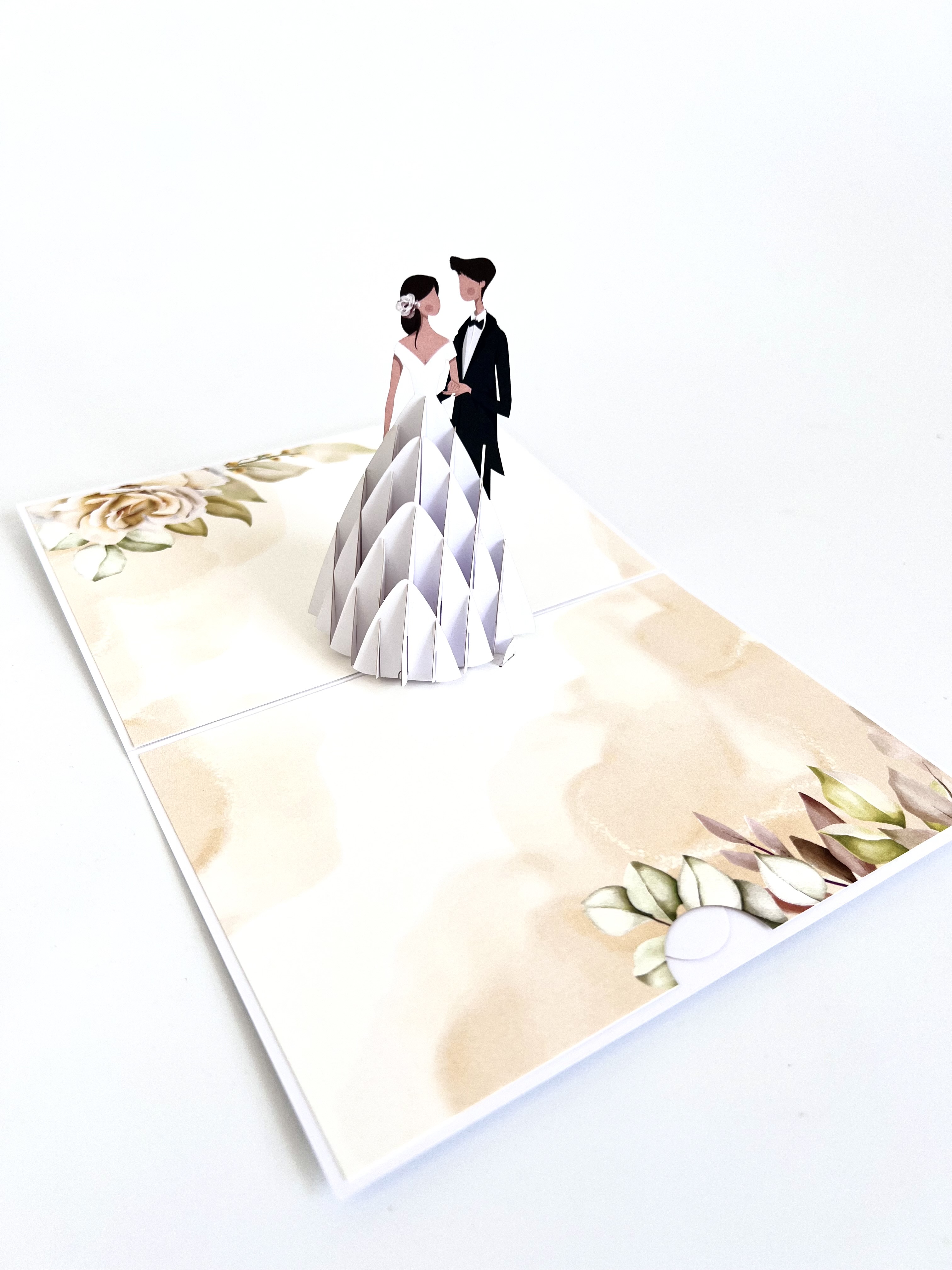 ✨Thiệp 3D Pop Up Cô Dâu Váy Trắng & Chú Rể – Thiệp Cưới, Thiệp Chúc Mừng Đám Cưới Sang Trọng, W12