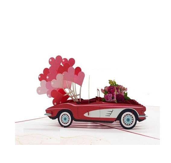 Gửi gắm lời yêu thương ngọt ngào với thiệp 3D Pop Up Xe Tình Yêu. Khi mở ra, chiếc xe tình yêu bật nổi với tông đỏ – trắng nổi bật, trên xe là cặp