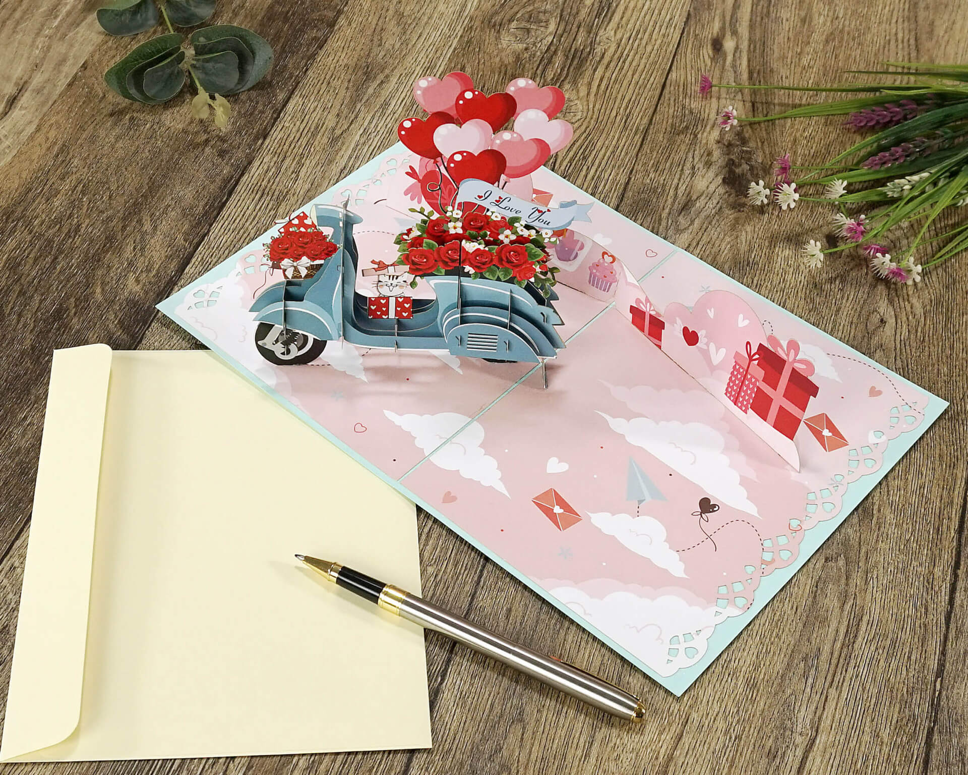 ✨Thiệp 3D Pop Up Xe Máy Tình Yêu – Thiệp Valentine, Thiệp Tỏ Tình, Thiệp Lãng Mạn Độc Đáo, L21