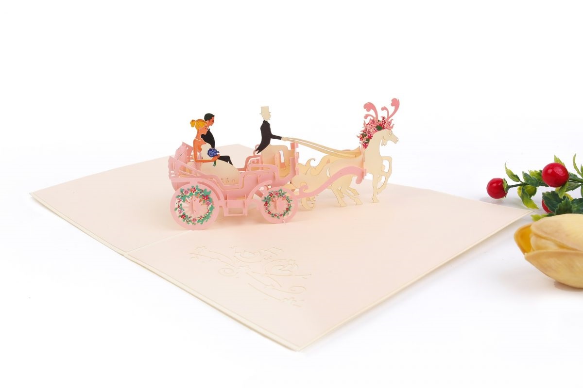 ✨Thiệp 3D Pop Up Xe Ngựa Cưới – Thiệp Chúc Mừng Đám Cưới, Thiệp Wedding Sang Trọng, Độc Đáo, W04