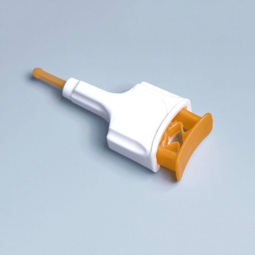 - Sau khi sử dụng, nút ấn kim sẽ thụt vào trong, kim không thể tái sử dụng.