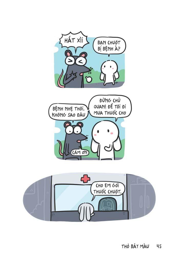 Cuốn sách là những mẩu chuyện nhỏ được ghi lại bằng tranh xoay quanh Thỏ Bảy Màu và những người nghĩ nó là bạn. Những mẩu chuyện được truyền tải rất “teen” đậm chất hài hước, châm biếm qua sự sáng tạo không kém phần “mặn mà” của tác giả càng trở nên độc đáo và thu hút.