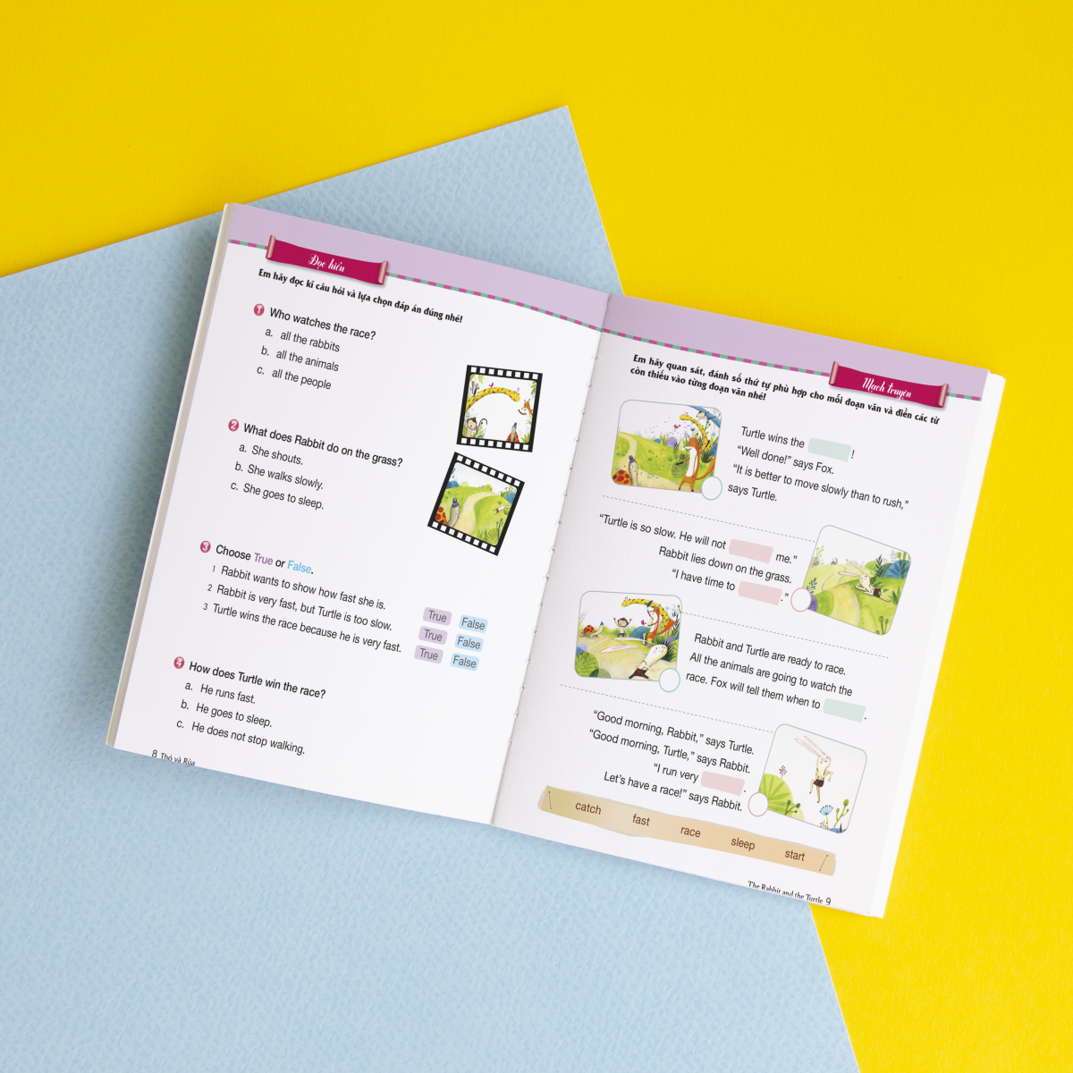 Bên cạnh phần truyện kể, bộ sách còn “đính kèm” phần bài tập với đầy đủ các dạng bài giúp rèn luyện toàn diện 4 kỹ năng nghe – nói – đọc – viết. Điều thú vị nhất trong bộ sách này phải kể đến những trò chơi tương tác và tấm thẻ sticker được tặng ngay sau phần truyện đọc. Chỉ qua một thao tác quét mã QR, bố mẹ đã có thể cùng bé chơi và học cách phát âm qua các trò chơi và bài hát cực kỳ dễ thương.