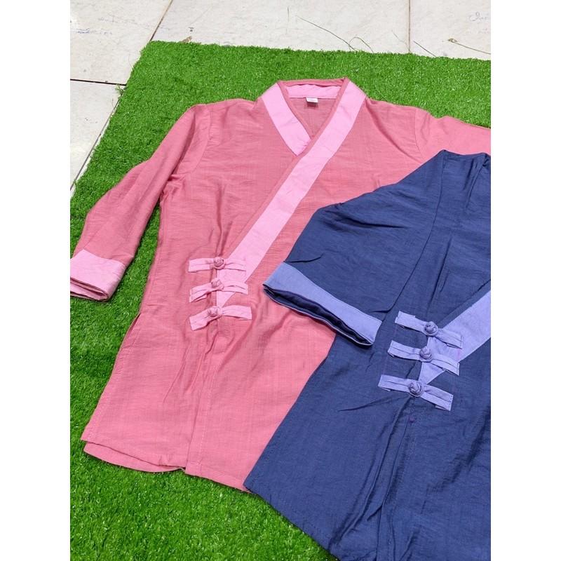 ✨thời trang nữ, đồ lam đi chùa, áo lam cao cấp nút phối