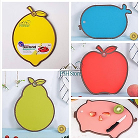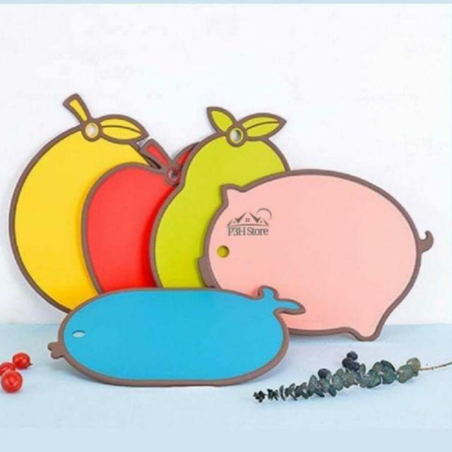 Thớt gồm nhiều mẫu : cá heo , trái lê , trái chanh , cá hồng , táo đỏ.