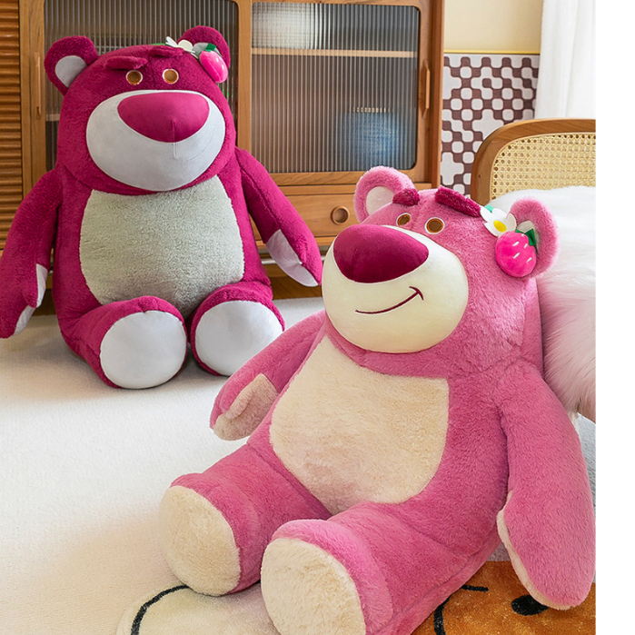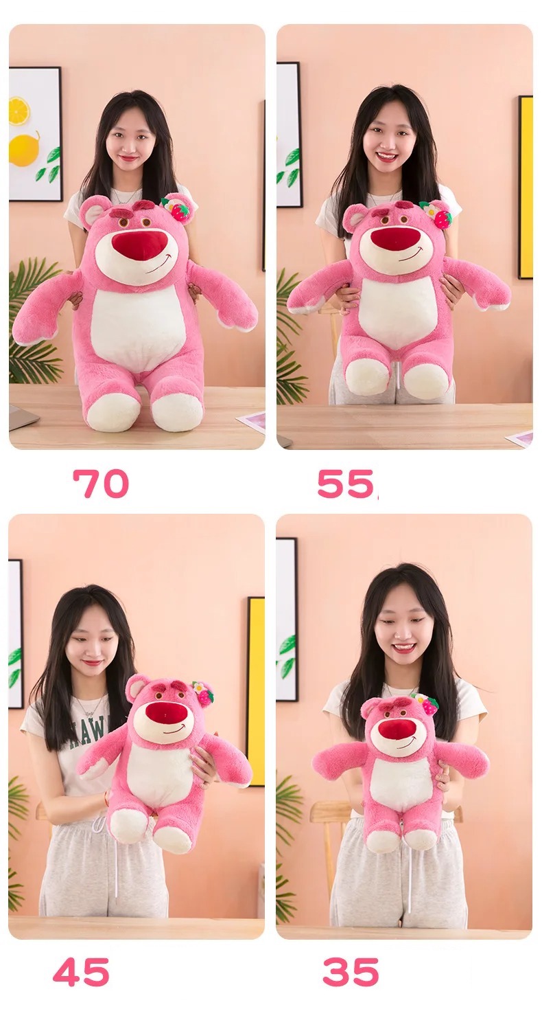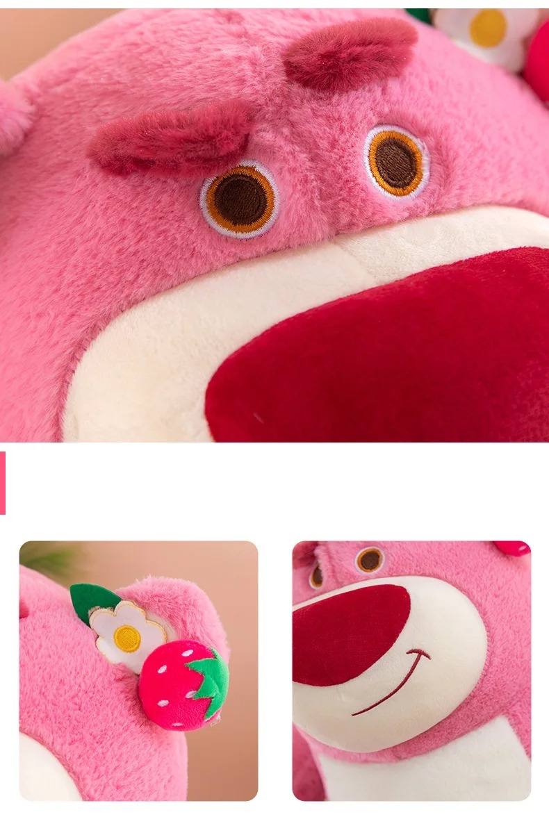 Gấu Dâu Lotso Huggin Bear Nằm Lông Xù Tai Dâu cực Cute, Thú nhồi Bông Hoạt Hình Lotso Đáng yêu | Cộn