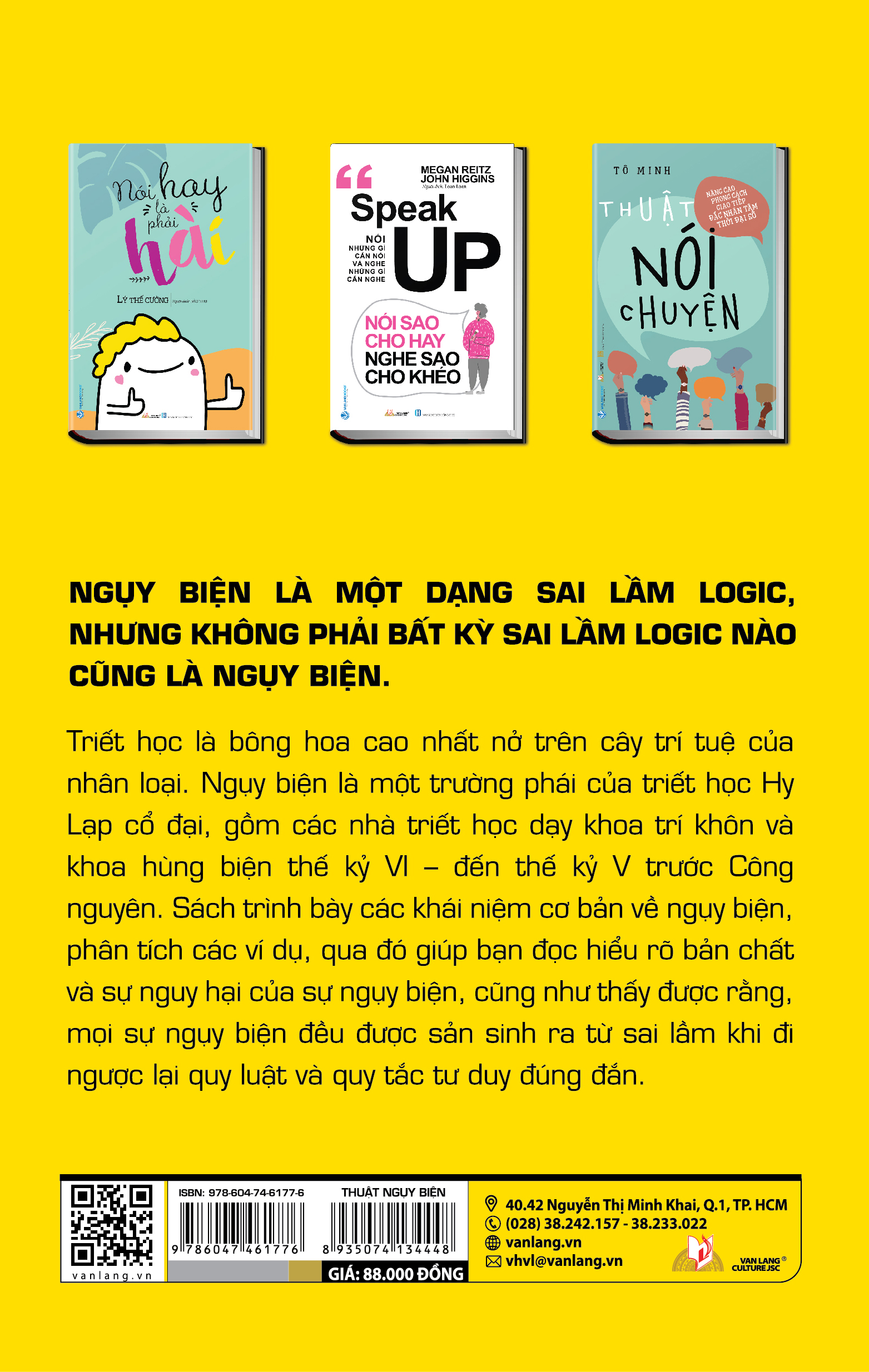 Triết học là bông hoa cao nhất nở trên cây trí tuệ của nhân loại. Ngụy biện là một trường phái của triết học Hy Lạp cổ đại, gồm các nhà triết học dạy khoa trí khôn và khoa hùng biện thế kỷ VI – đến thế kỷ V trước Công nguyên. Sách trình bày các khái niệm cơ bản về ngụy biện, phân tích các ví dụ, qua đó giúp bạn đọc hiểu rõ bản chất và sự nguy hại của sự ngụy biện, cũng như thấy được rằng, mọi sự ngụy biện đều được sản sinh ra từ sai lầm khi đi ngược lại quy luật và quy tắc tư duy đúng đắn ..