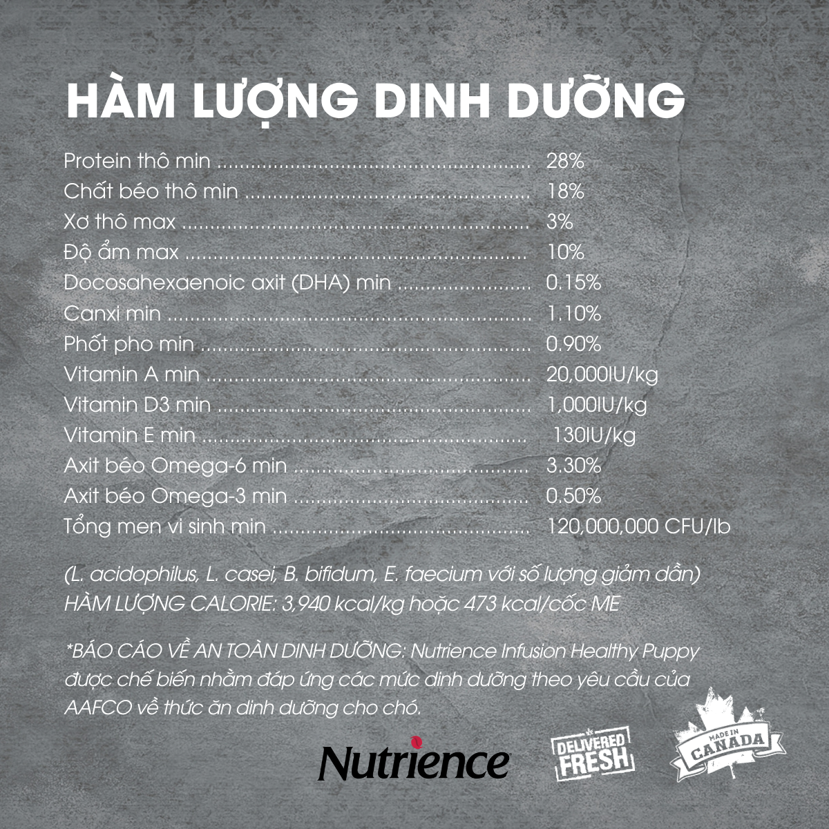 - Thức Ăn Chó Con Khỏe Mạnh Nutrience Infusion - Thịt Gà, Rau Củ Và Trái Cây Tự Nhiên chất lượng cao là nguyên liệu chủ yếu trong công thức sản phẩm Nutrience lnfusion Healthy