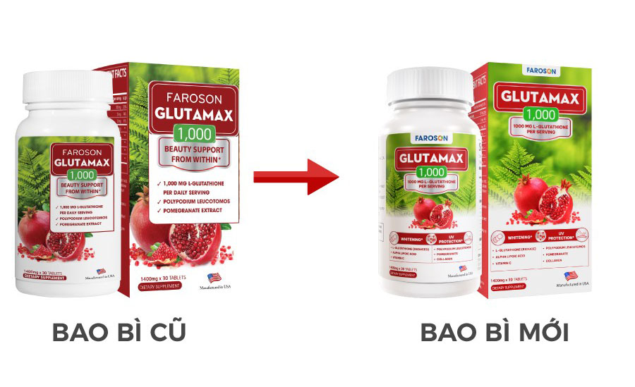 Thực Phẩm Bảo Vệ Sức Khỏe Faroson Glutamax 1000 Beauty Support From Within Hỗ Trợ Làn Da 30 Viên chứa các vitamin và dưỡng chất giúp làm sáng da, giảm nám da, bảo vệ da khỏi tia UV (ánh nắng mặt trời) và hỗ trợ tăng cường khả năng chống oxy hóa, giúp làm tăng độ đàn hồi cho da, giảm lão hóa da. Sản phẩm này không phải là thuốc, không có tác dụng thay thế thuốc chữa bệnh.