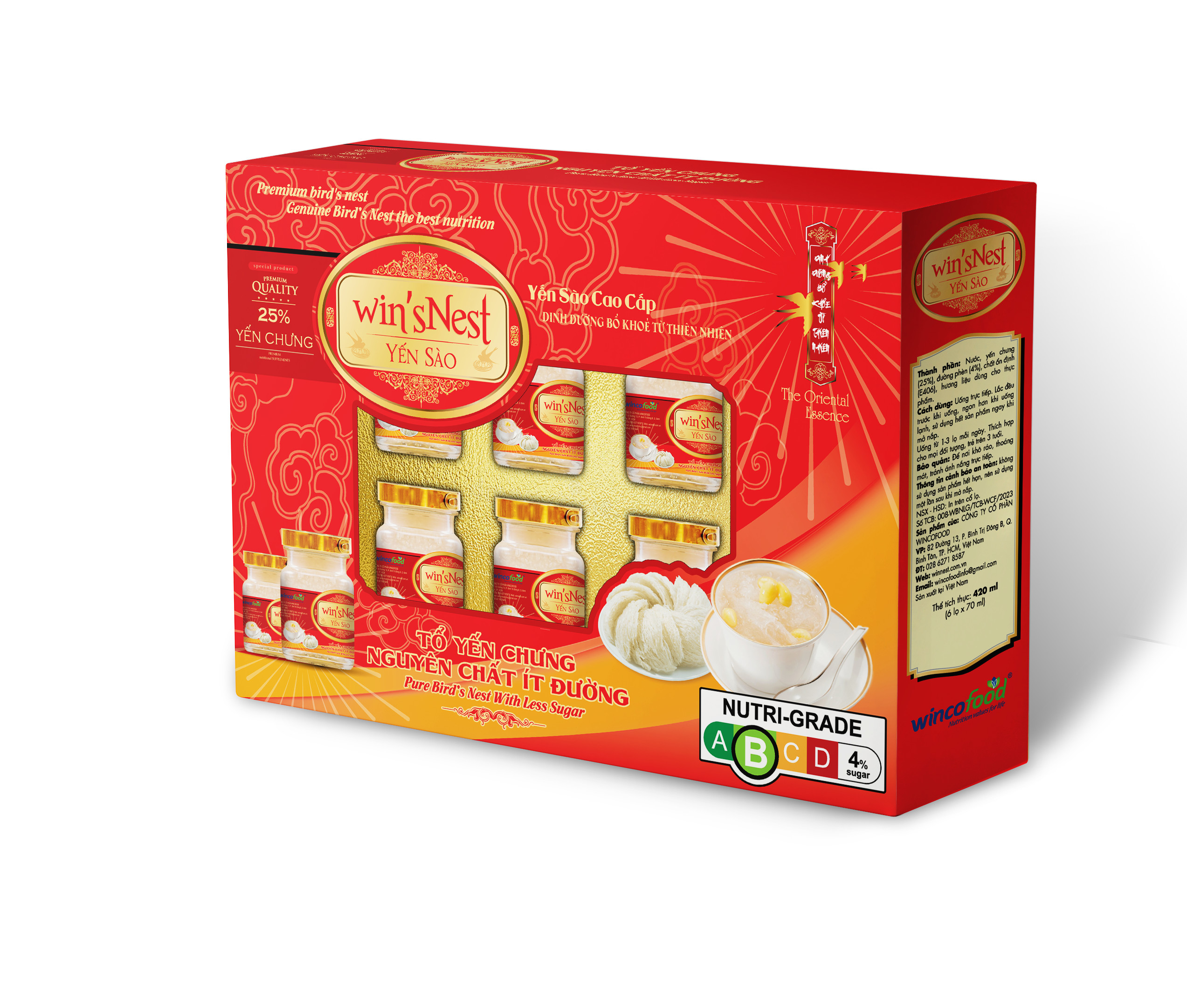 - Yến sào: Hỗ trợ tăng sức đề kháng cho cơ thể, chống lão hóa, ổn định thần kinh, trí nhớ, kích thích tiêu hóa, phục hồi sức khỏe nhanh chóng trong thời gian dưỡng bệnh. Đối tượng sử dụng: thích hợp cho mọi đối tượng đăc biệt trẻ từ 3 tuổi trở lên Sản xuất: Việt Nam Thành phần: Nước, , Yến sào (25%), đường phèn (4%) , chất ổn định (E406), hương liệu dùng cho thực phẩm. Cách dùng: - Lắc nhẹ trước khi uống, ngon hơn khi uống lạnh, tránh đun nóng sản phẩm trước khi sử dụng. - Uống trực tiếp từ lọ. --Uống từ 1 - 2 lọ/ngày. Sản phẩm thích hợp cho người lớn tăng sức đề kháng giúp cơ thể khỏe mạnh, phục hồi sức khỏe cho người bệnh, Không sử dụng sản phẩm khi hết hạn, nên sử dụng một lần sau khi mở nắp.