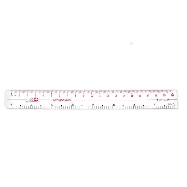 Thước SR-022 trong suốt được in 2 màu đỏ và đen, Có vạch chia cm và inch.