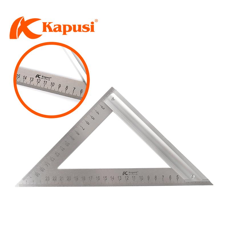 - Thước ke góc vuông nhôm Kapusi Nhật Bản có tay thước được làm bằng chất liệu nhôm, có thiết kế livo, chắc chắn, dập thương hiệu Kapusi.