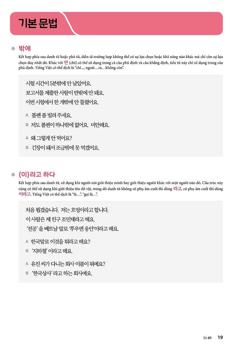 Tiếng Hàn Tổng Hợp Dành Cho Người Việt Nam - Sơ Cấp 1 Phiên Bản Mới (4 Màu) ~~~~~~~ 2 cuốn sách trong bộ Sơ cấp được xây dựng với 30 bài khóa và bảng