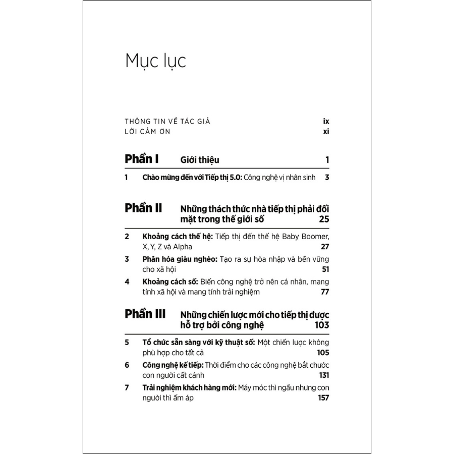 Phần 2 – Tư duy và chiến lược tiếp thị 5.0:Tập trung vào “công nghệ vị nhân sinh” – sử dụng AI, dữ liệu lớn, IoT, cảm biến, máy học… để tăng hiệu quả tiếp thị mà vẫn giữ tính nhân văn, đồng cảm và mang lại giá trị thực chất cho khách hàng.