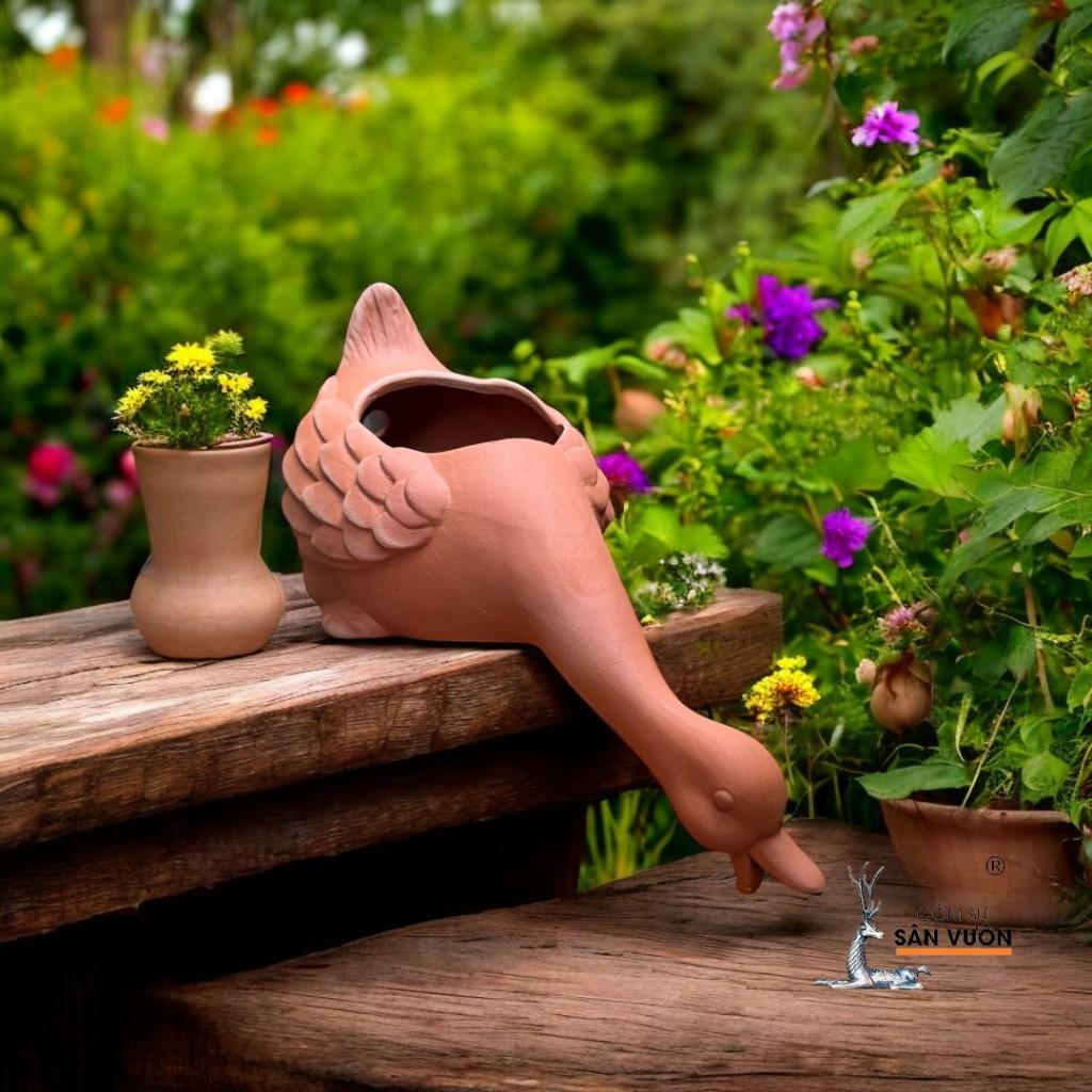 • Tên sản phẩm : Tiểu Cảnh Thủy Cảnh Đất Nung Hình Vịt Phun Nước Hồ Cá