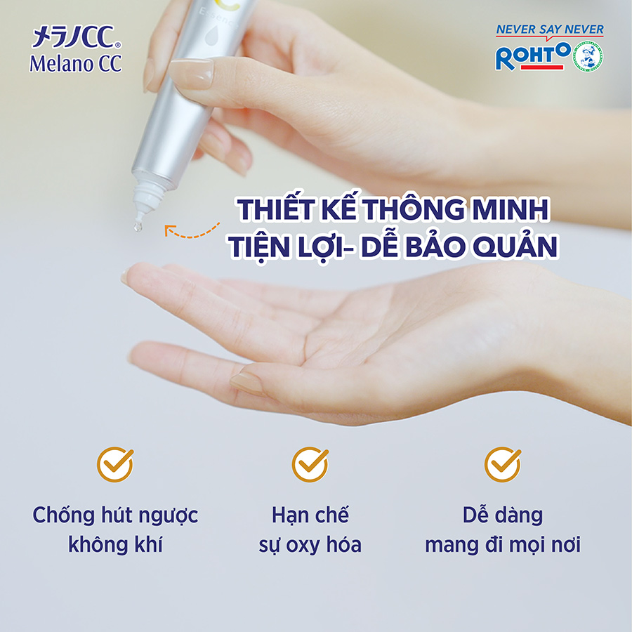 - Tinh chất vitamin C dưỡng trắng Melano CC được áp dụng công nghệ thẩm thấu độc quyền đưa Vitamin C và Vitamin B6 thấm sâu vào da tựa máy đẩy tinh chất (thấm sâu gấp 4.48 lần so với Melano CC Whitening Essence bản cũ) Hướng dẫn sử dụng:
