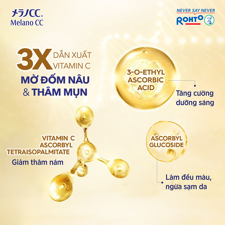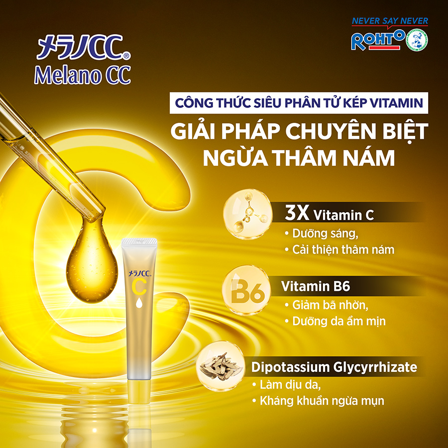 Mua tại TiktokThành phần chính và công dụng: Tinh chất vitamin C dưỡng trắng Melano CC với công dụng làm mờ thâm nám, làm sáng thâm mụn và dưỡng da sáng mịn đều màu