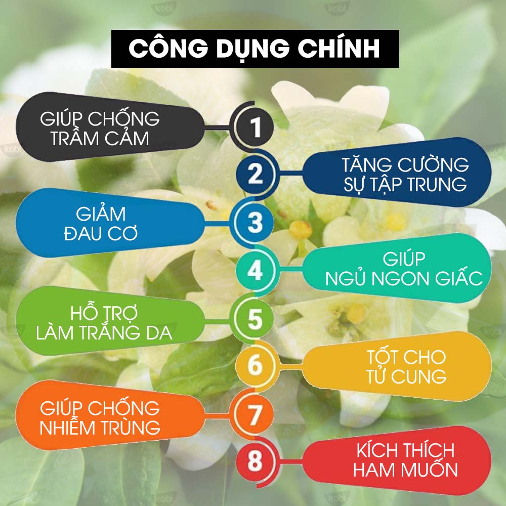 - Tư vấn nhiệt tình, thông tin rõ ràng, đầy đủ, giúp bạn an tâm khi lựa chọn. Thông tin chung về thực vật và tinh dầu Hoa Nhài Kobi (Jasmine essential oil)