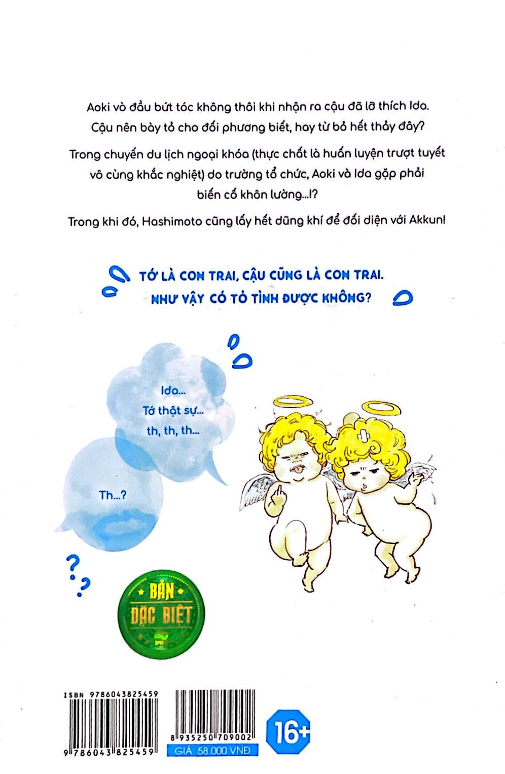 Mua tại TiktokAoki vò đầu bứt tóc không thôi khi nhận ra cậu đã lỡ thích Ida. Cậu nên bày tỏ cho đối phương biết, hay từ bỏ hết thảy đây? Trong chuyến du lịch ngoại khóa (thực chất là huấn luyện trượt tuyết vô cùng khắc nghiệt) do trường tổ chức, Aoki và Ida gặp phải biến cố khôn lường…!? Trong khi đó, Hashimoto cũng lấy hết dũng khí để đối diện với Akkun! Mời các bạn đón đọc câu chuyện về mối tình đầu có chút ngốc nghếch của các cô cậu học trò tốt bụng và luôn nỗ lực hết mình!